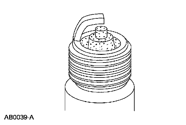 3. Inspect for carbon fouling. Look for black, dry, fluffy carbon deposits on the insulator tips, exposed shell surfaces and electrodes, caused by a spark plug with an incorrect heat range, dirty air cleaner, too rich a fuel mixture or excessive idling.