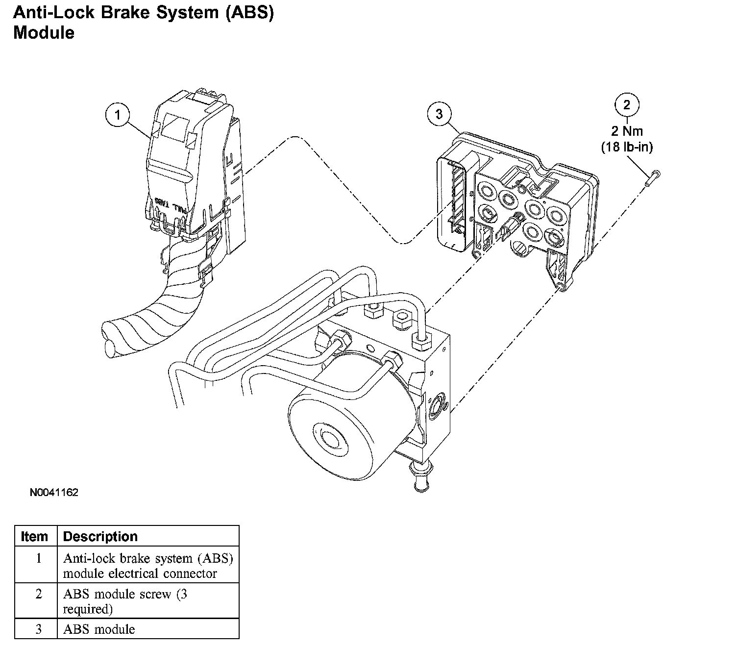 NOTE: When installing a new ABS control module it must be configured using the vehicle as-built data and calibrated. For additional information, refer to Body Control Systems.