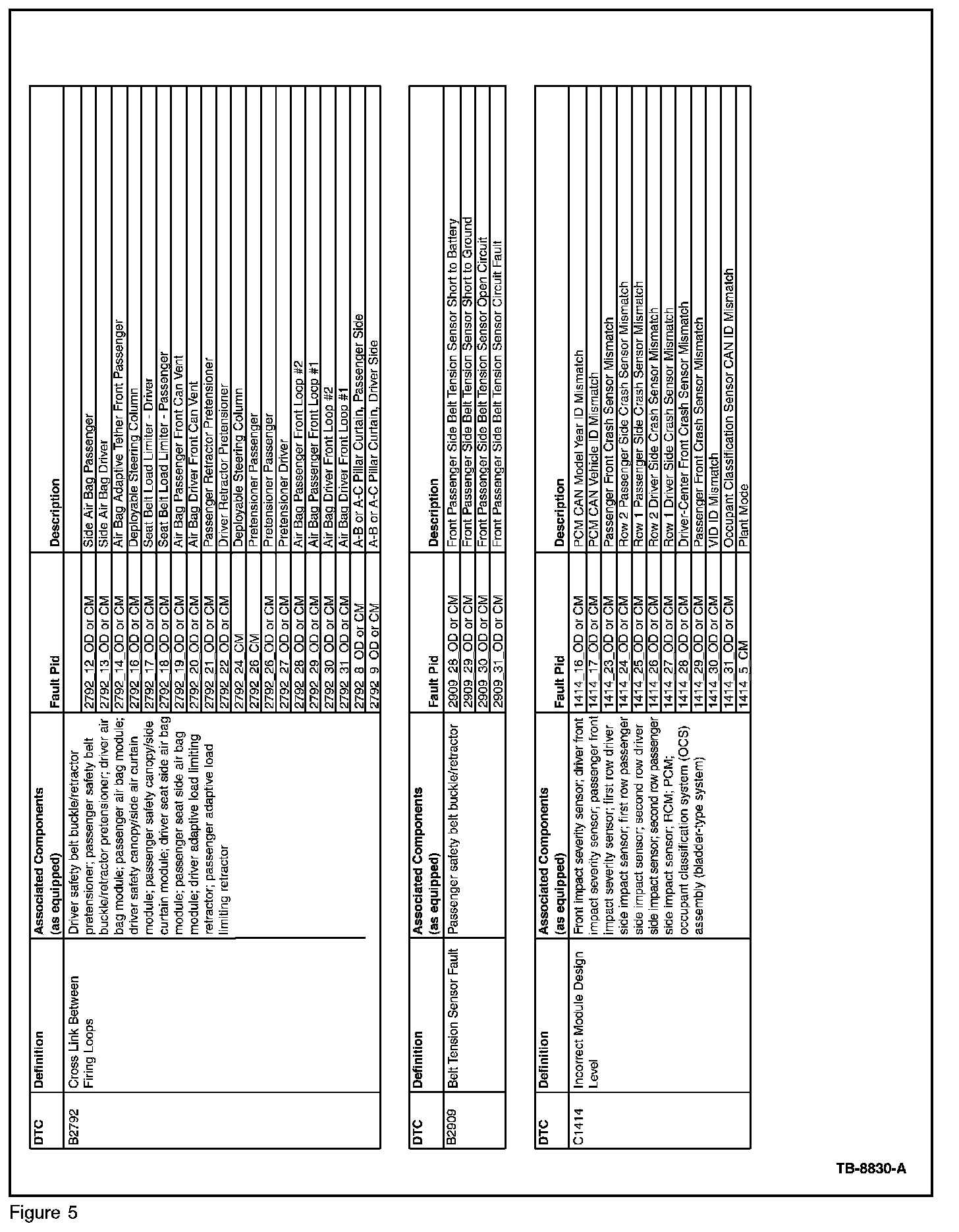 Restraints - Control Module DTCs, Associated Fault PIDs