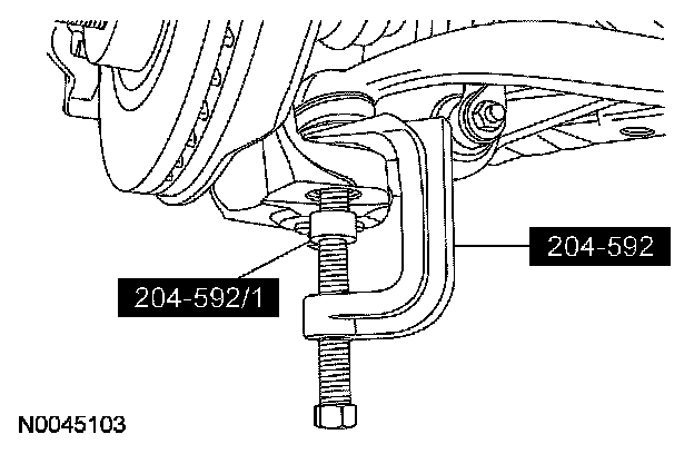 NOTE: Once pressure is applied to the ball joint with the special tool, it may be necessary to tap the wheel knuckle at the ball joint area to separate the ball joint from the wheel knuckle.