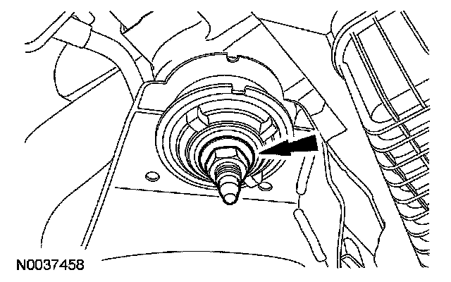 15. CAUTION: When the lower ball joint is separated from the wheel knuckle, the lower arm may strike the outer constant velocity (CV) joint boot with enough force to damage the boot clamp. This will result in a loss of grease from the outer CV joint. Place a block of wood, or similar item, between the lower arm and the outer CV joint to prevent the lower arm from striking the outer CV joint.