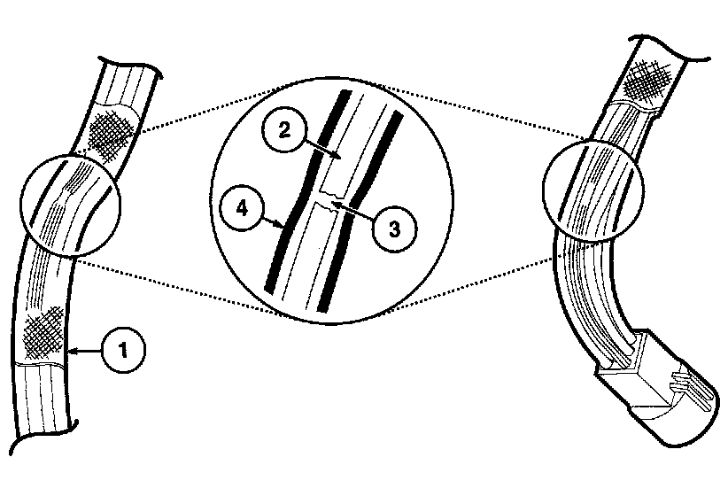 The following illustrations are known examples of wiring harness, splices and connectors that will create intermittent electrical concerns. The concerns are hidden and can only be discovered by a physical evaluation as shown in each illustration.