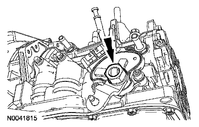3. CAUTION: Do not use air tools on this nut. Hold the manual control lever, while tightening the manual control lever nut, failure to the manual control lever shaft or the TR sensor could occur.
