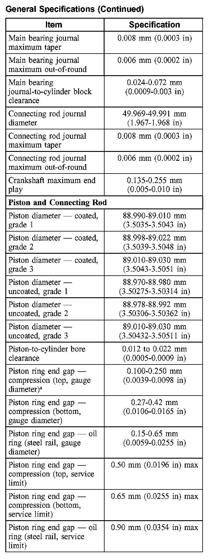 General Specifications