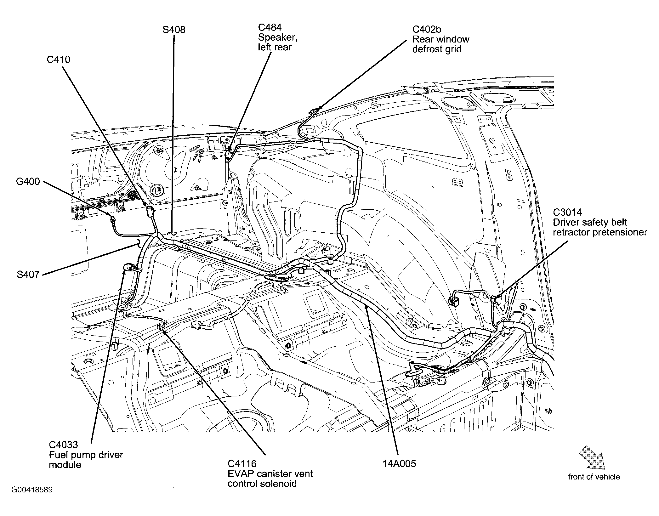 Fuel Pump Driver Module Underside of luggage compartment. See Figure .