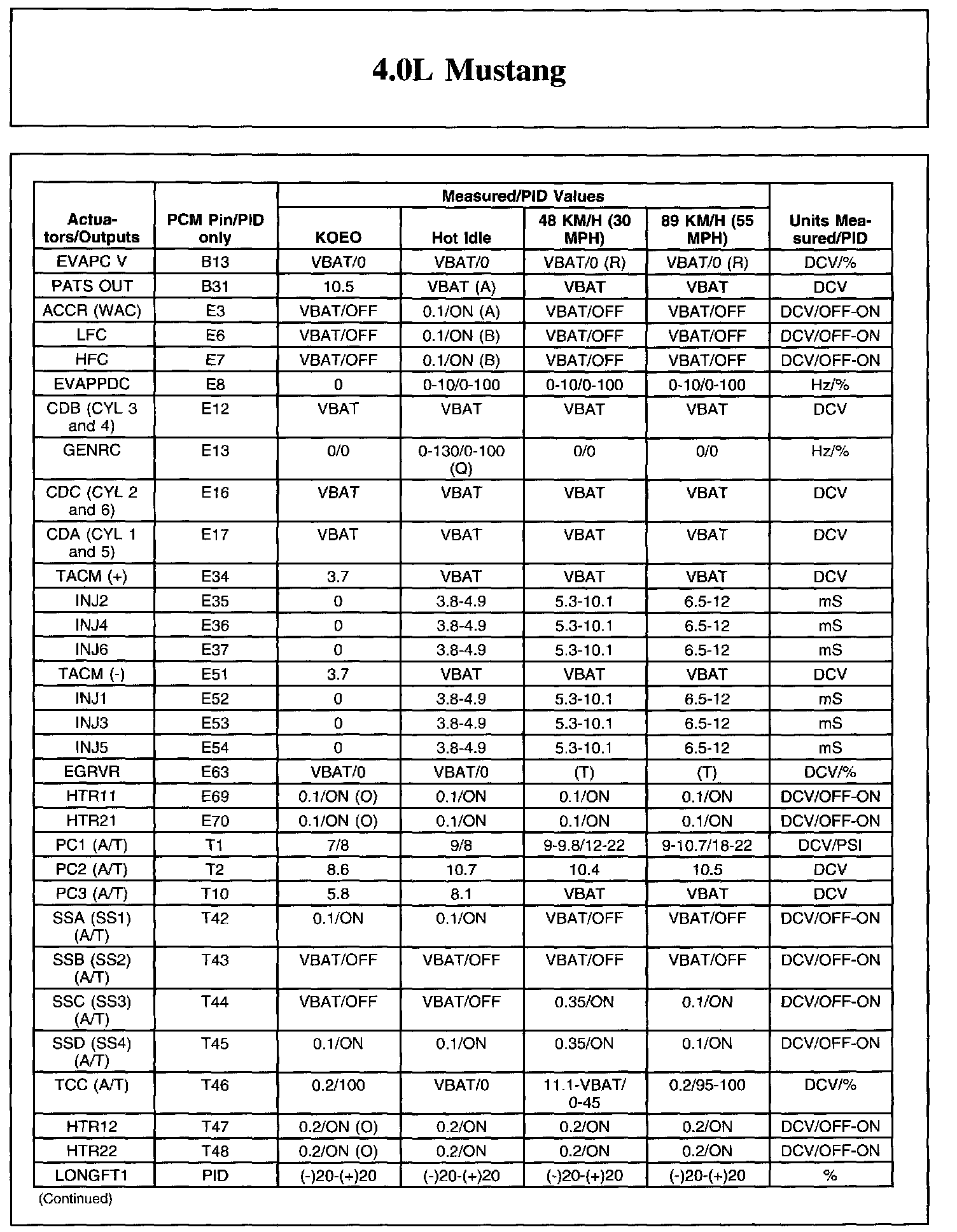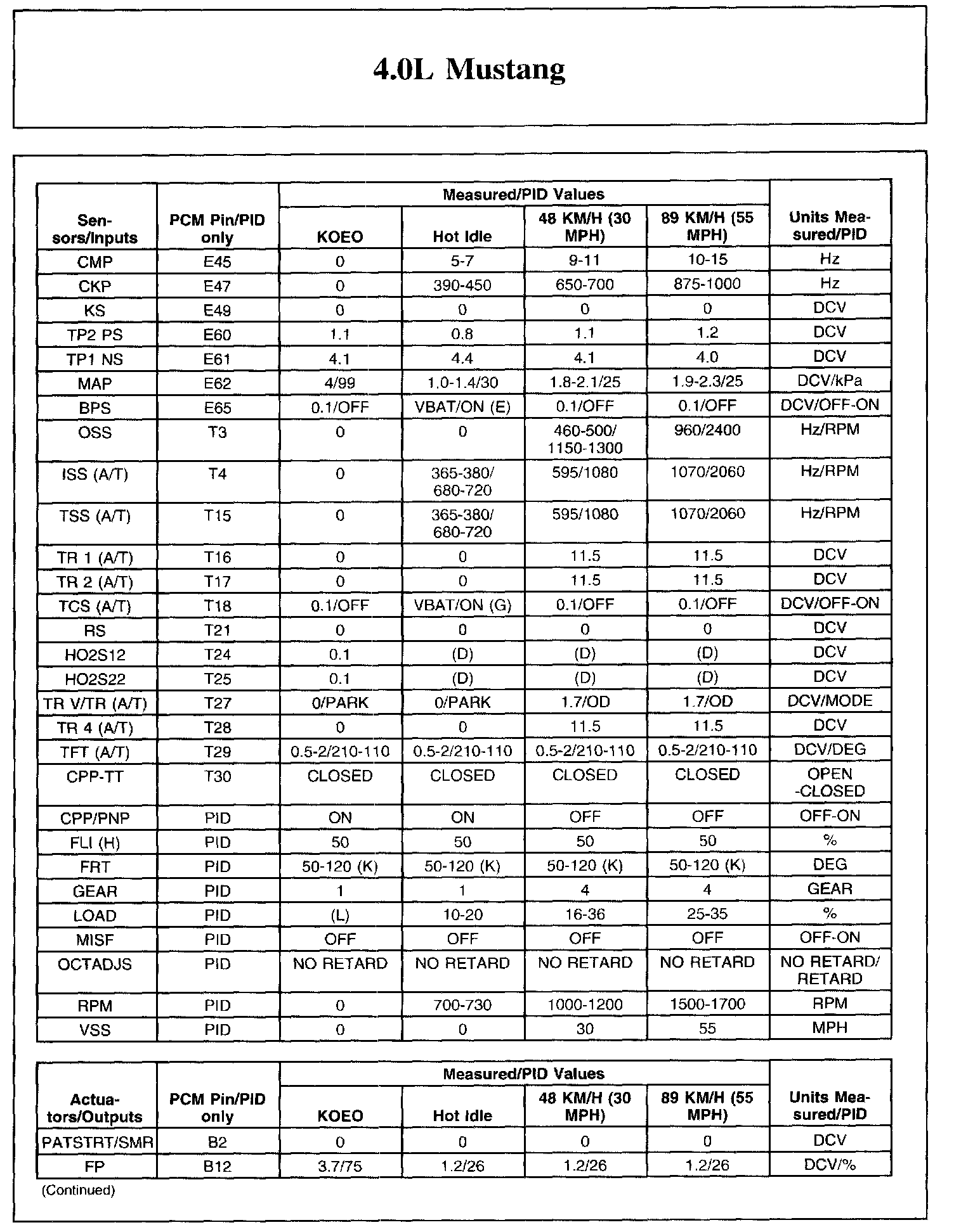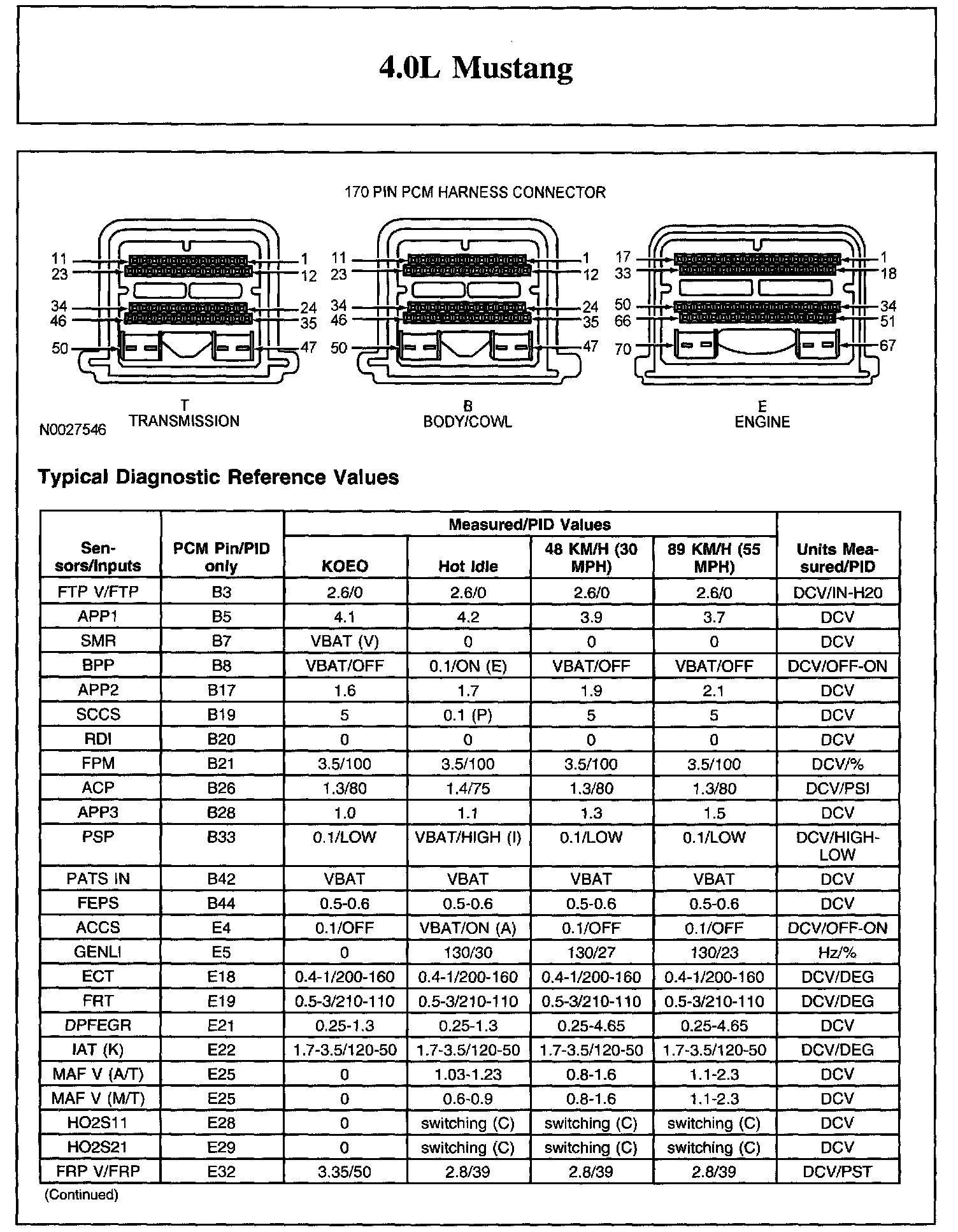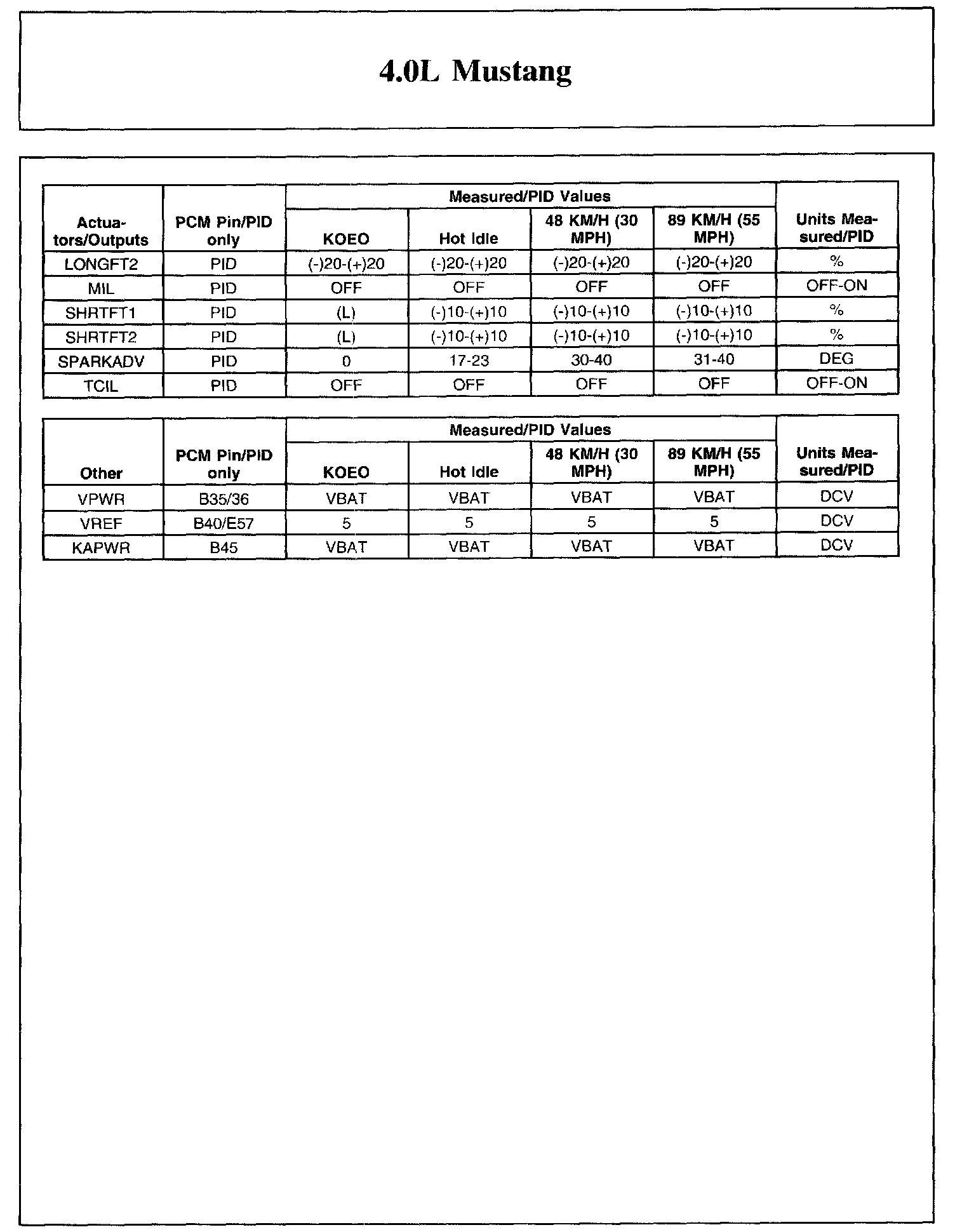 Home >> Ford >> 2006 >> Mustang V6-4.0L VIN N >> Repair and Diagnosis >> Powertrain Management >> Computers and Control Systems >> Testing and Inspection >> Scan Tool Testing and Procedures >> Typical Diagnostic Reference Values