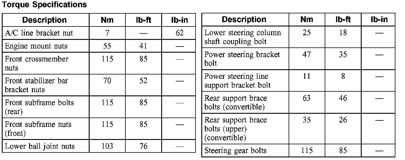 Torque Specifications: