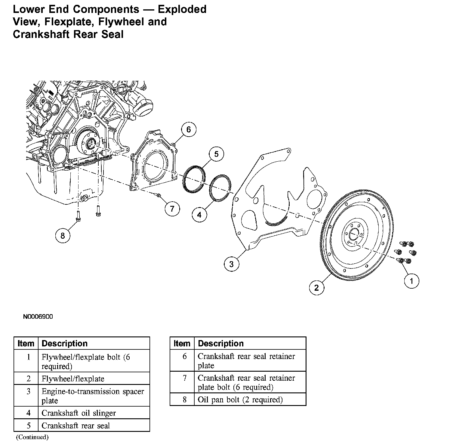 Lower End Components - Exploded View, Flexplate, Flywheel and Crankshaft Rear Seal