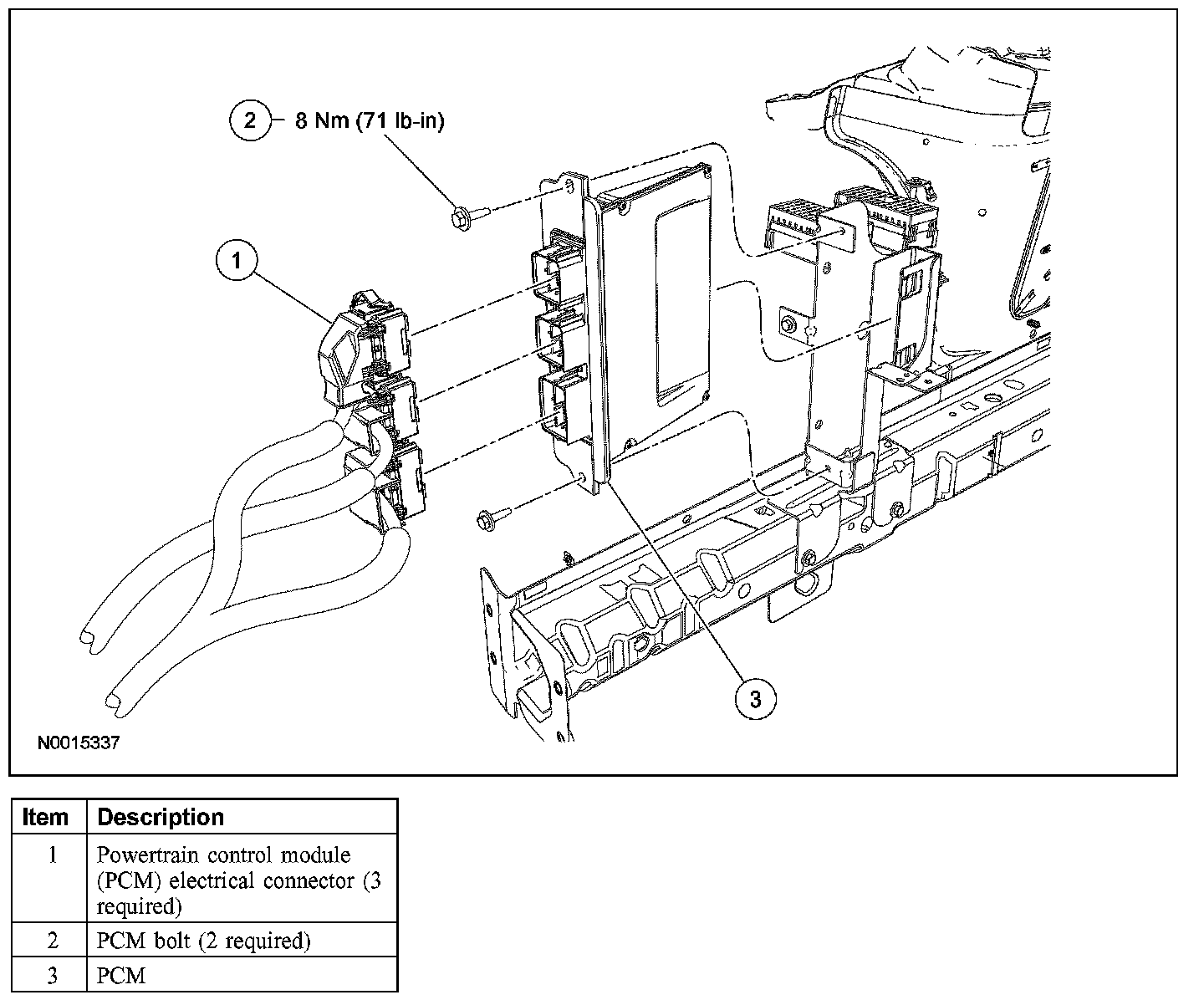 3. Remove the 2 bolts and the PCM.
