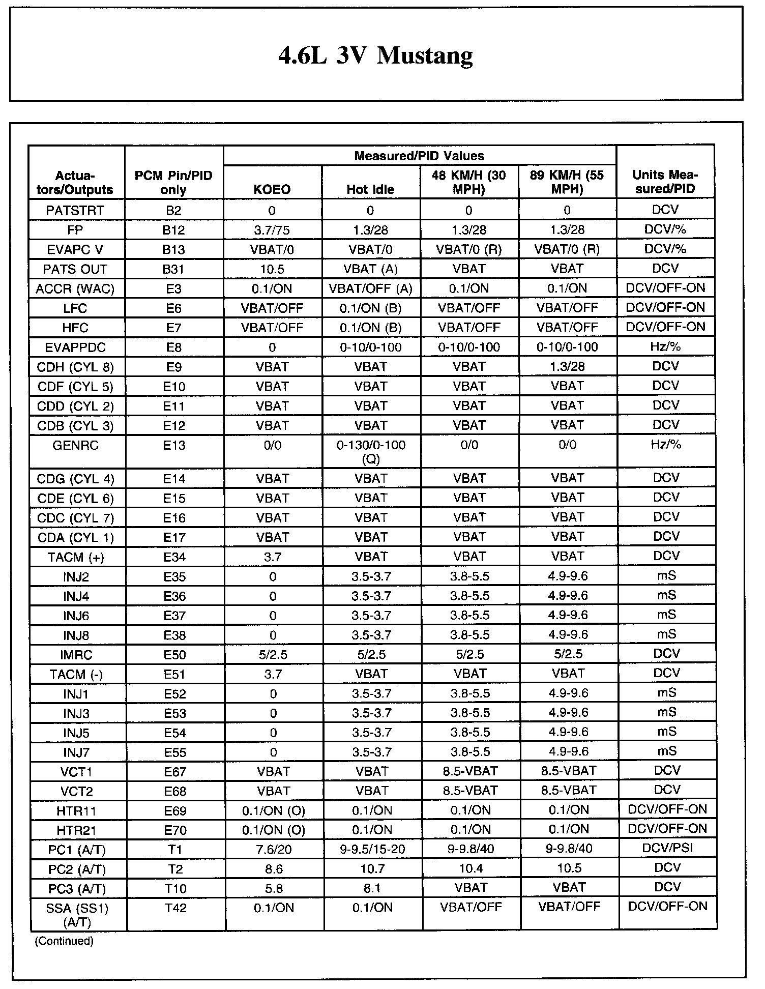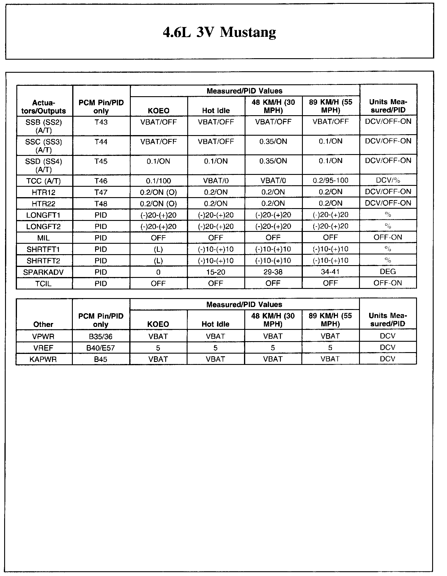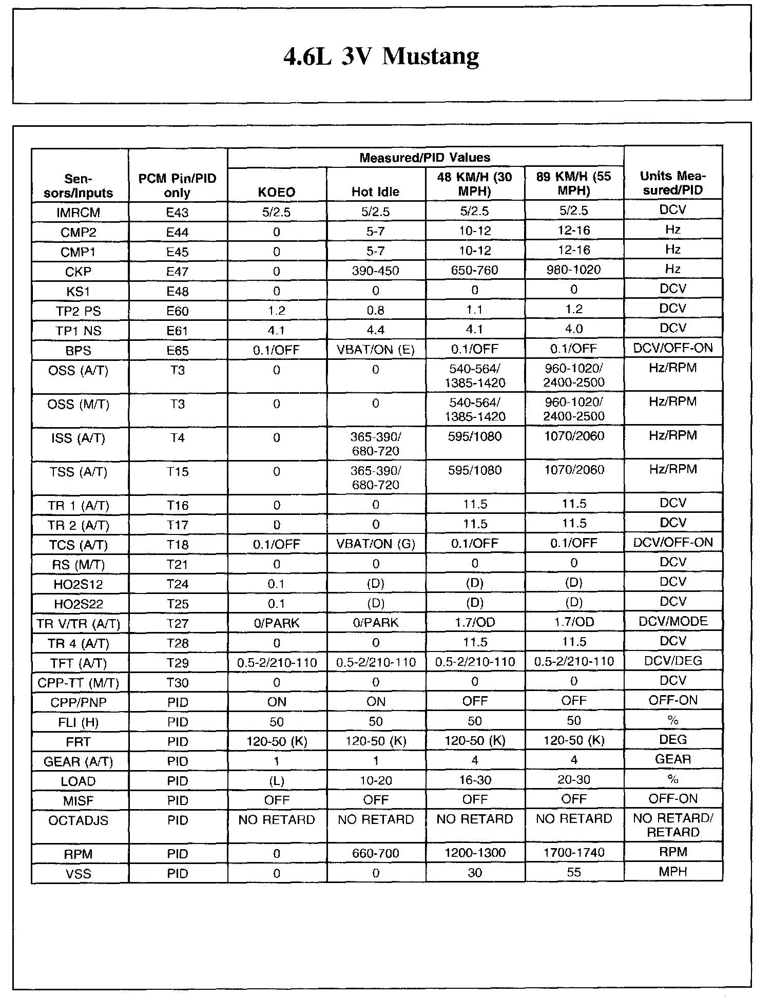 The Typical Diagnostic Reference Value Charts do not display fault parameter identifications (PIDs). These are PIDs which indicate a hard fault with the circuit. They display a value of YES or NO and are PIDs ending with the letter F.