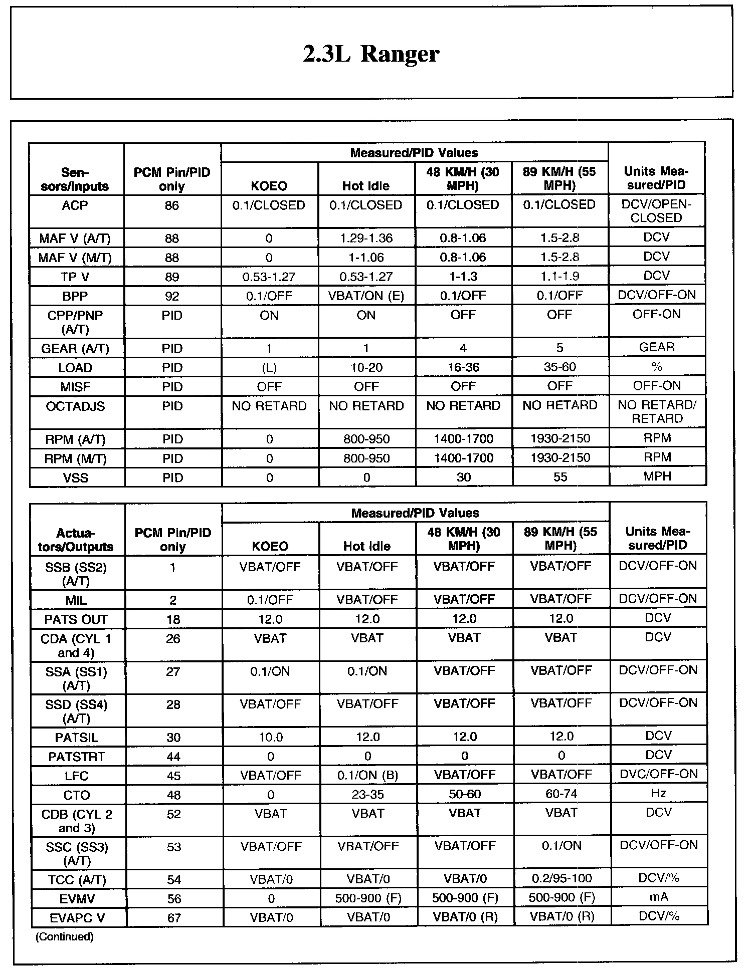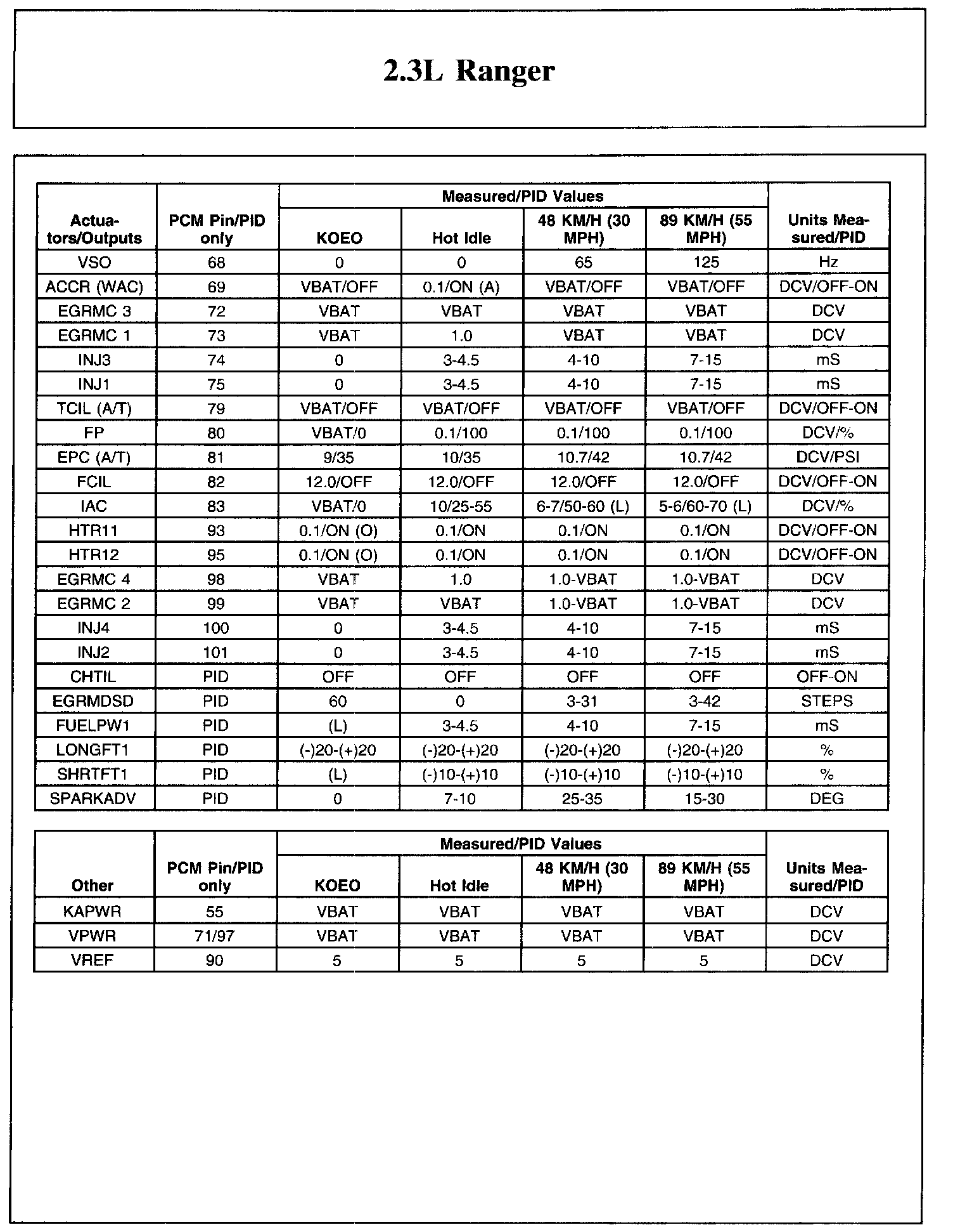 Home >> Ford >> 2006 >> Ranger 2WD L4-2.3L VIN D >> Repair and Diagnosis >> Powertrain Management >> Computers and Control Systems >> Testing and Inspection >> Scan Tool Testing and Procedures >> Typical Diagnostic Reference Values