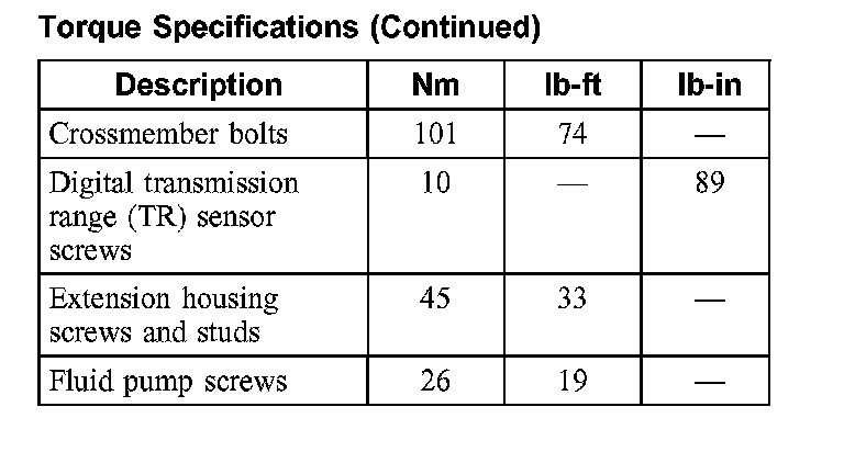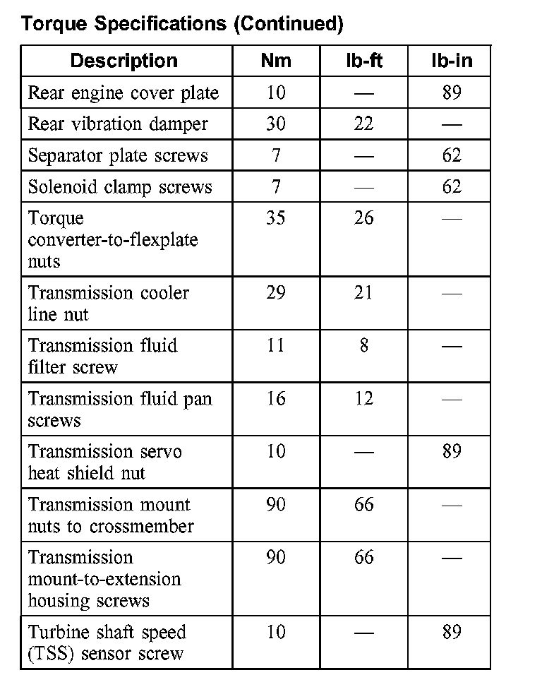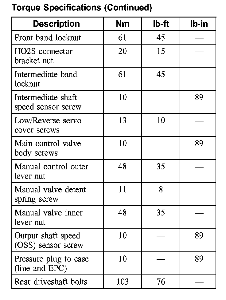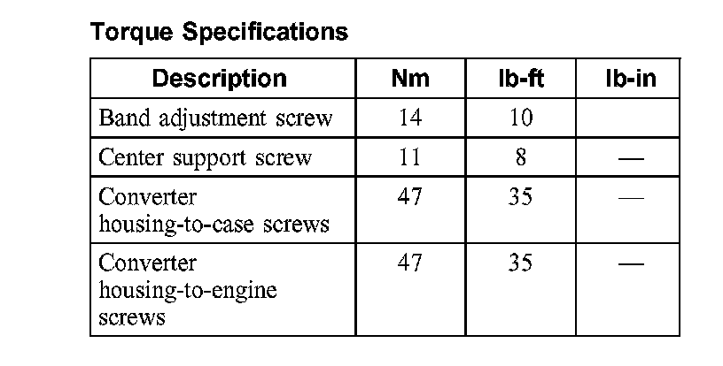 Torque Specifications: