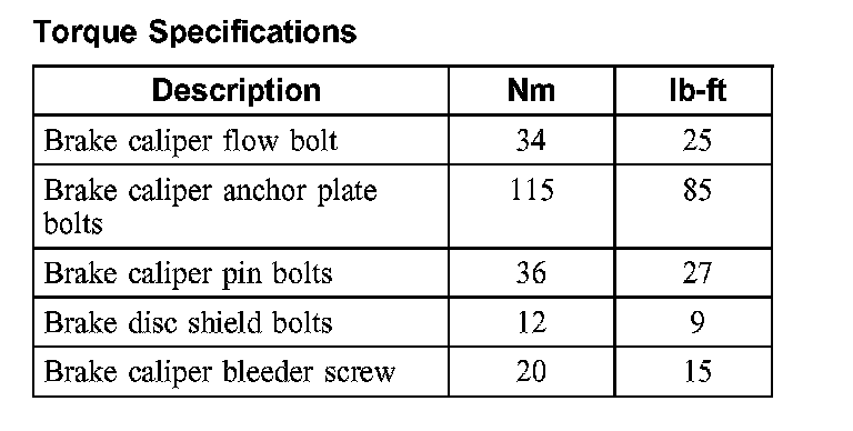 Torque Specifications, Front