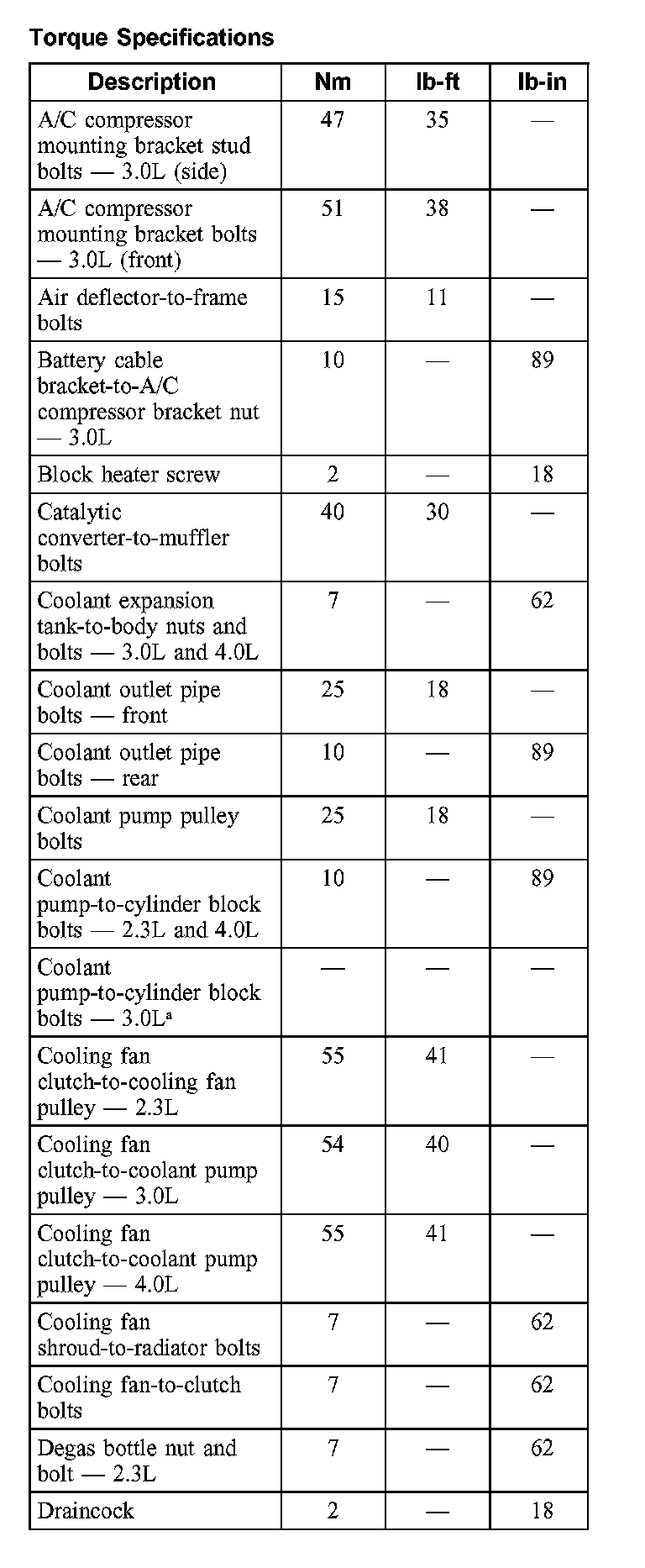 Torque Specifications