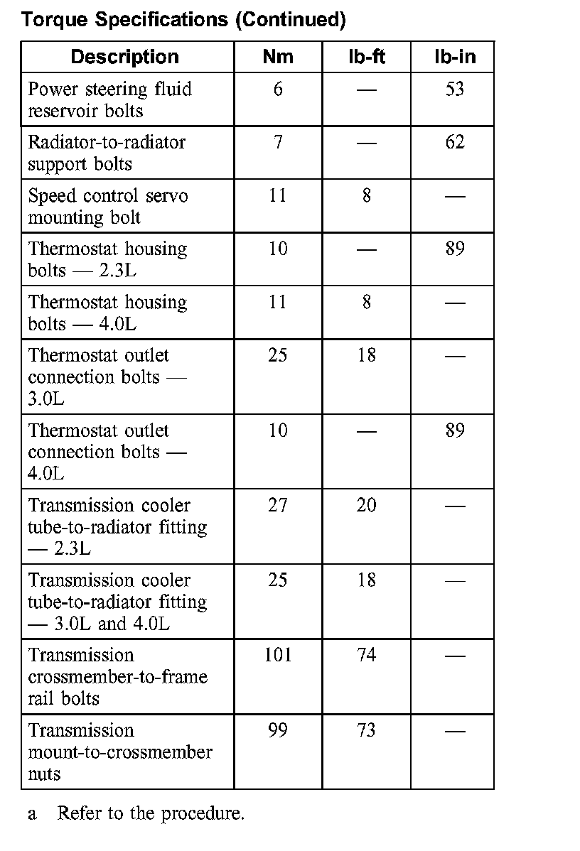 Torque Specifications: