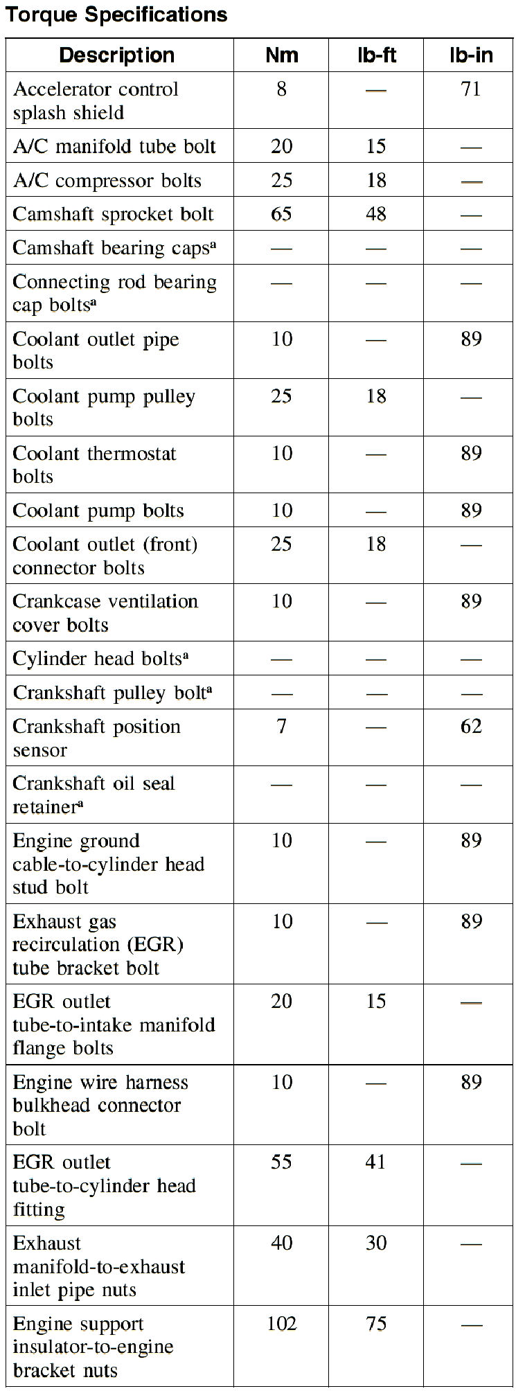 Torque Specifications