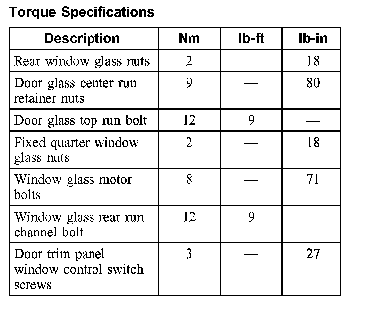 Torque Specifications: