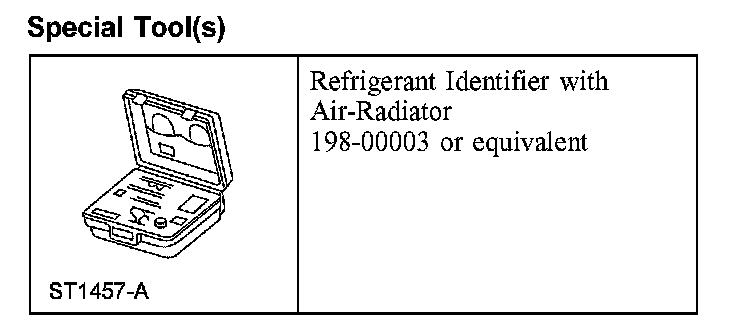 1. NOTE: An A/C refrigerant analyzer must be used to identify gas samples taken directly from the refrigeration system or storage containers prior to recovering or charging the refrigerant system.