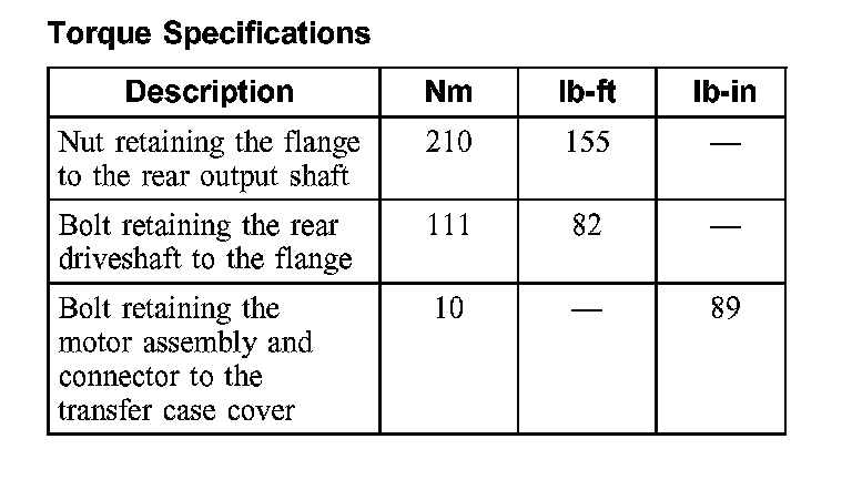 Torque Specifications: