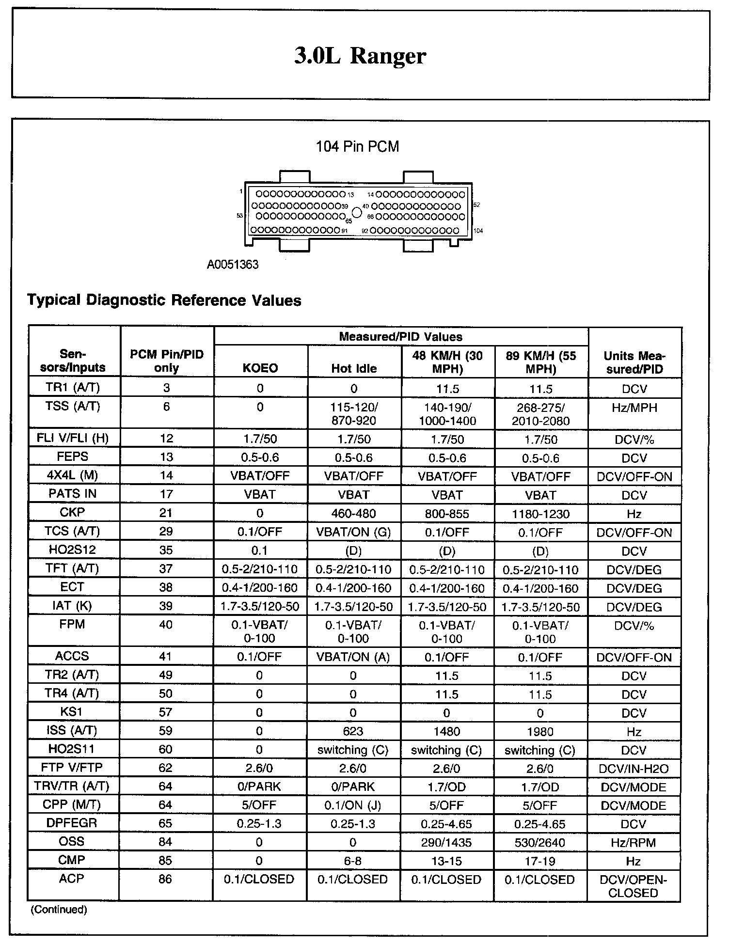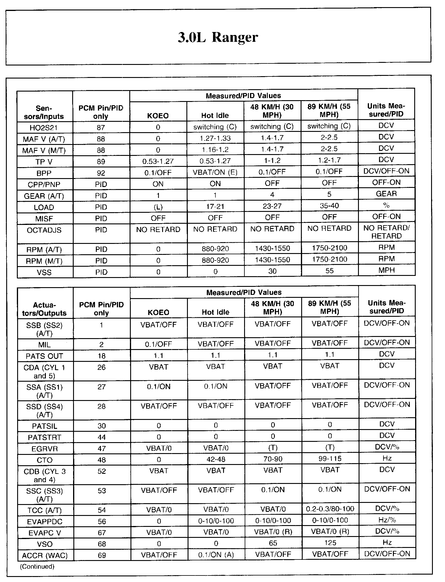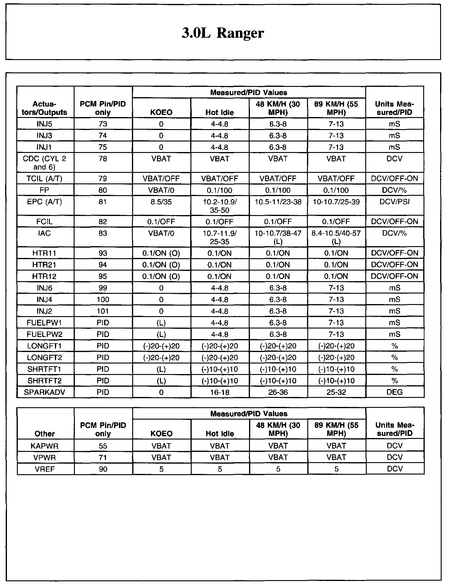 Home >> Ford >> 2006 >> Ranger 4WD V6-3.0L VIN U >> Repair and Diagnosis >> Powertrain Management >> Computers and Control Systems >> Testing and Inspection >> Scan Tool Testing and Procedures >> Typical Diagnostic Reference Values