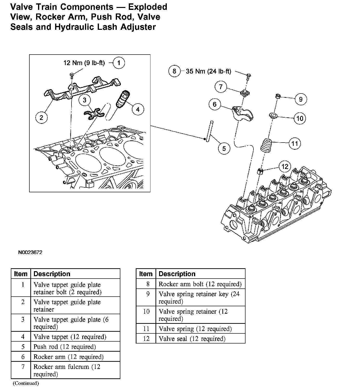 Valve Train Components - Exploded View, Rocker Arm, Push Rod, Valve Seals and Hydraulic Lash Adjuster: