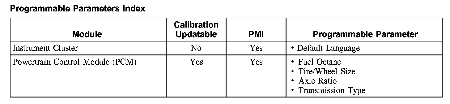 Programmable Parameters Index: