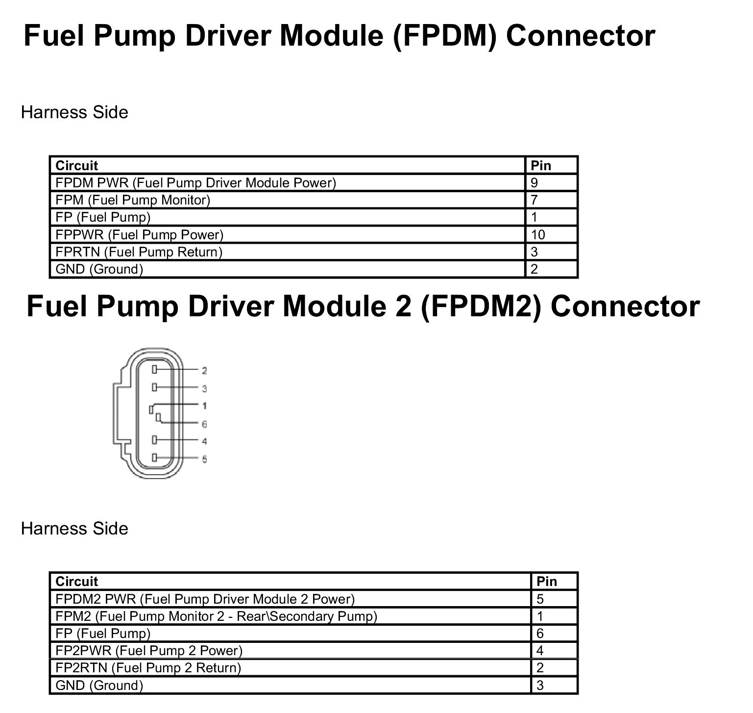 - harness circuits: B+ GND FPDM GND FPDM2 GND FPDMR GND FPM FPM2 FP FP PWR FP2P and FPDM2 PWR
