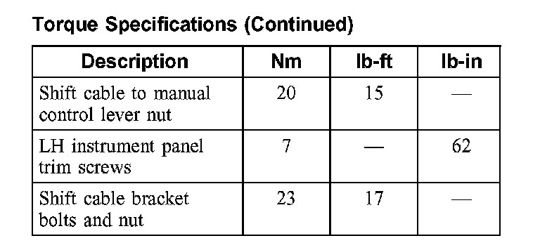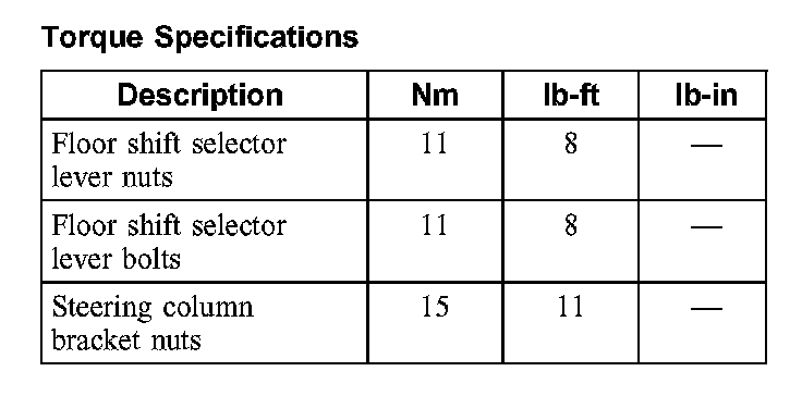 Torque Specifications: