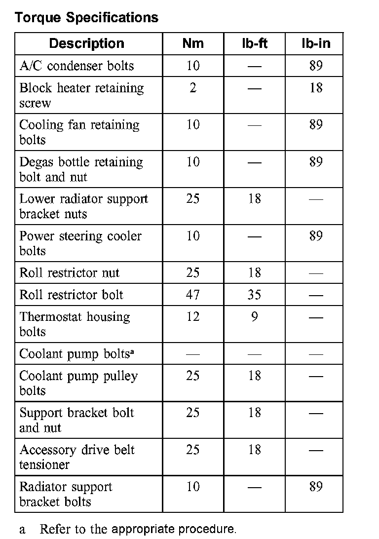Torque Specifications: