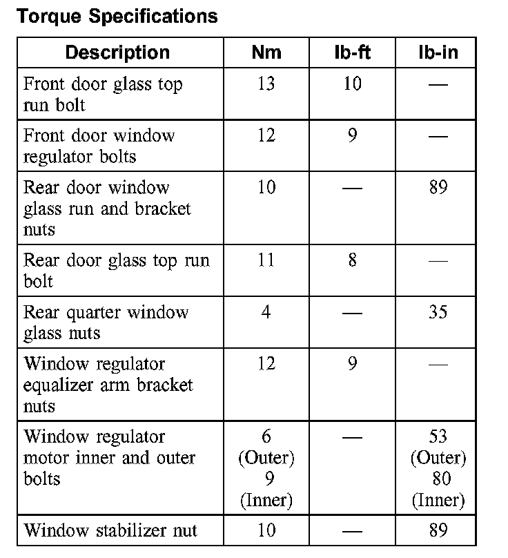 Torque Specifications