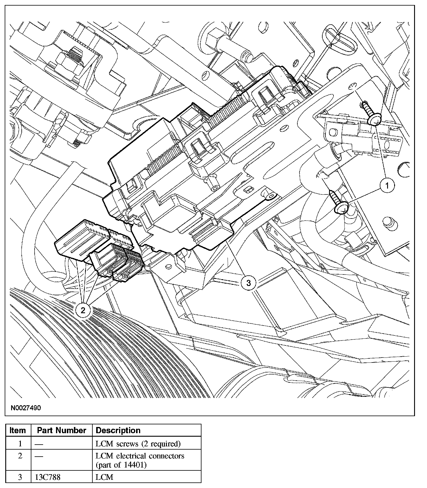 1. NOTE: A new LCM is delivered in a manufacturing mode with a pre-set DTC of B2477. This DTC will clear when the module has been successfully configured (or PMI). DTC B2477 may need to be cleared after a successful configuration (or PMI).