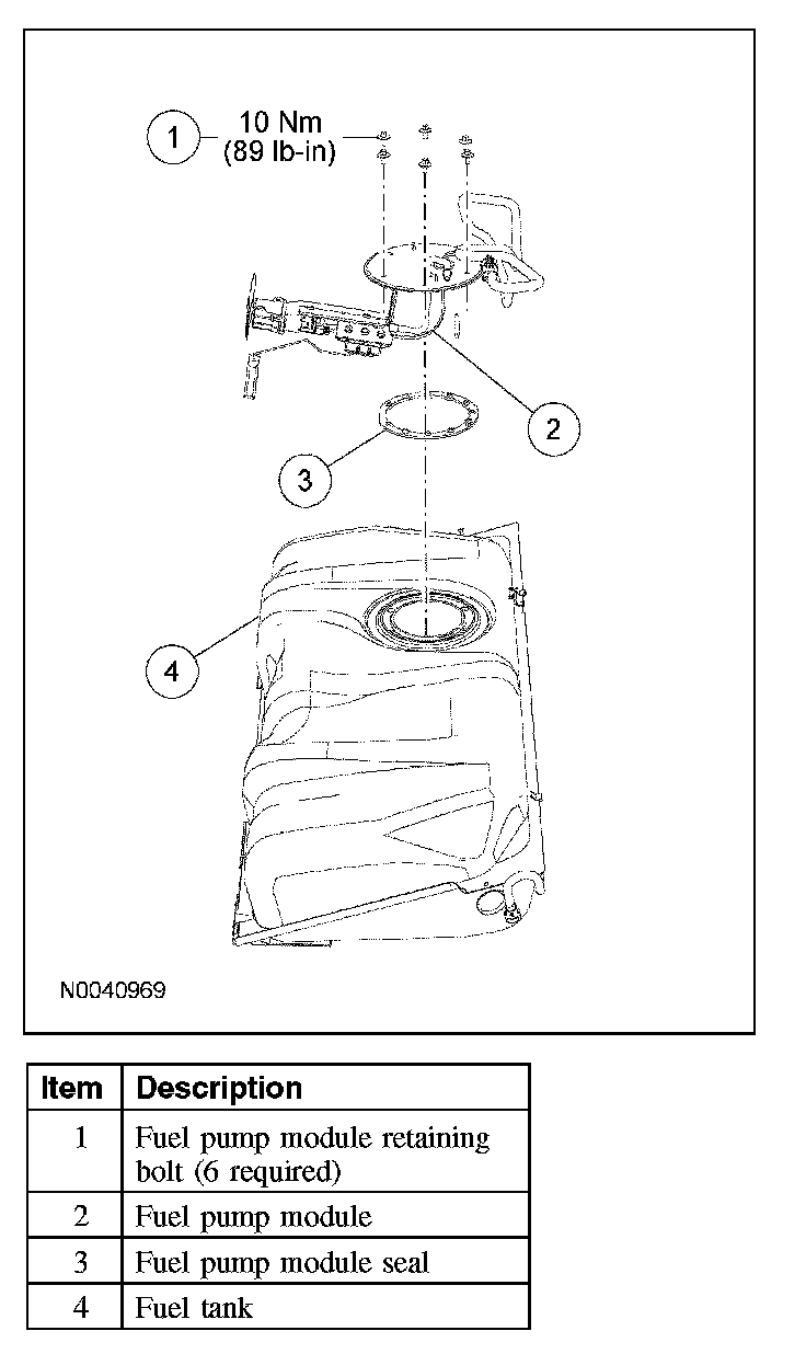 - Inspect the surfaces of the fuel pump module flange and fuel tank seal contact surfaces. Do not polish or adjust the seal contact area of the fuel pump flange or fuel tank. Install a new fuel pump module or fuel tank if the seal contact area is bent, scratched or corroded.
