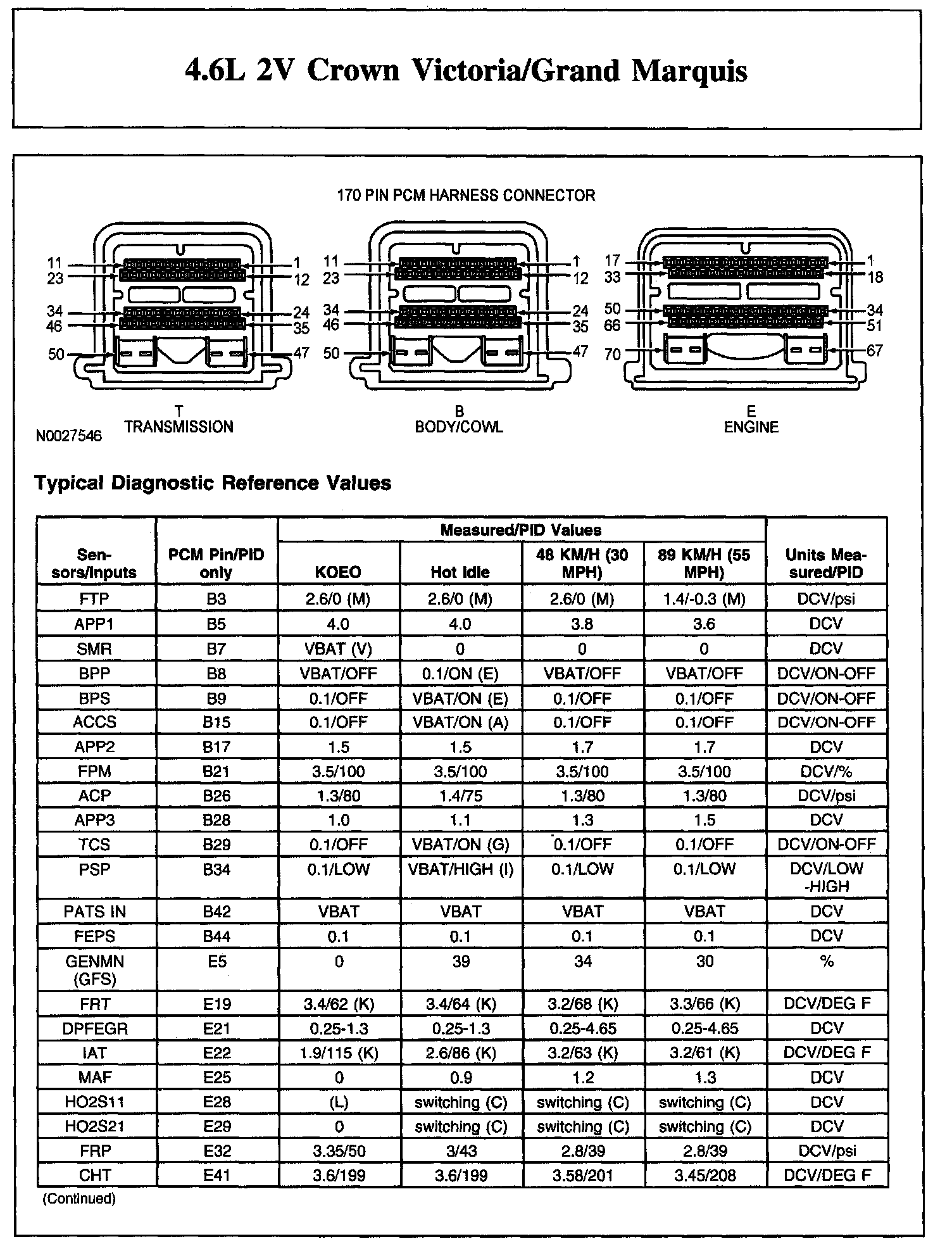 Home >> Ford >> 2007 >> Crown Victoria V8-4.6L VIN W >> Repair and Diagnosis >> Powertrain Management >> Computers and Control Systems >> Testing and Inspection >> Scan Tool Testing and Procedures >> Typical Diagnostic Reference Values