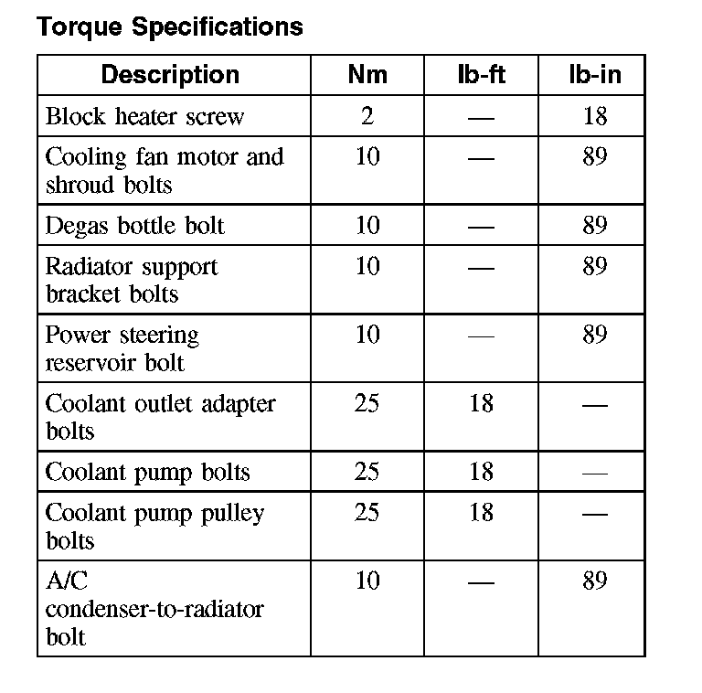 Torque Specifications: