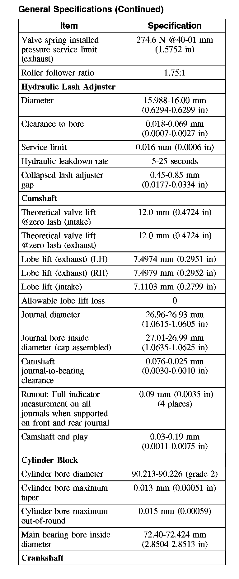 General Specifications