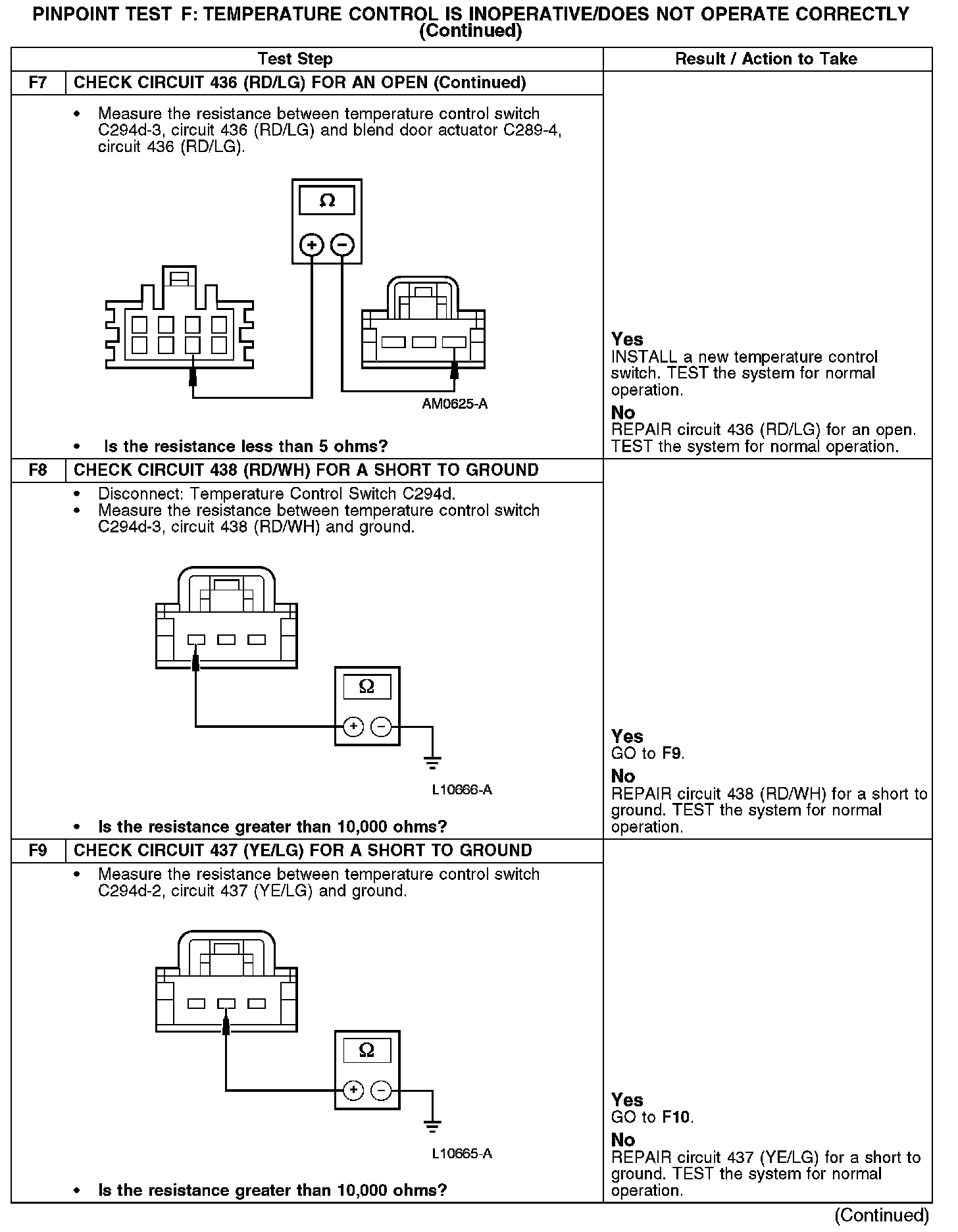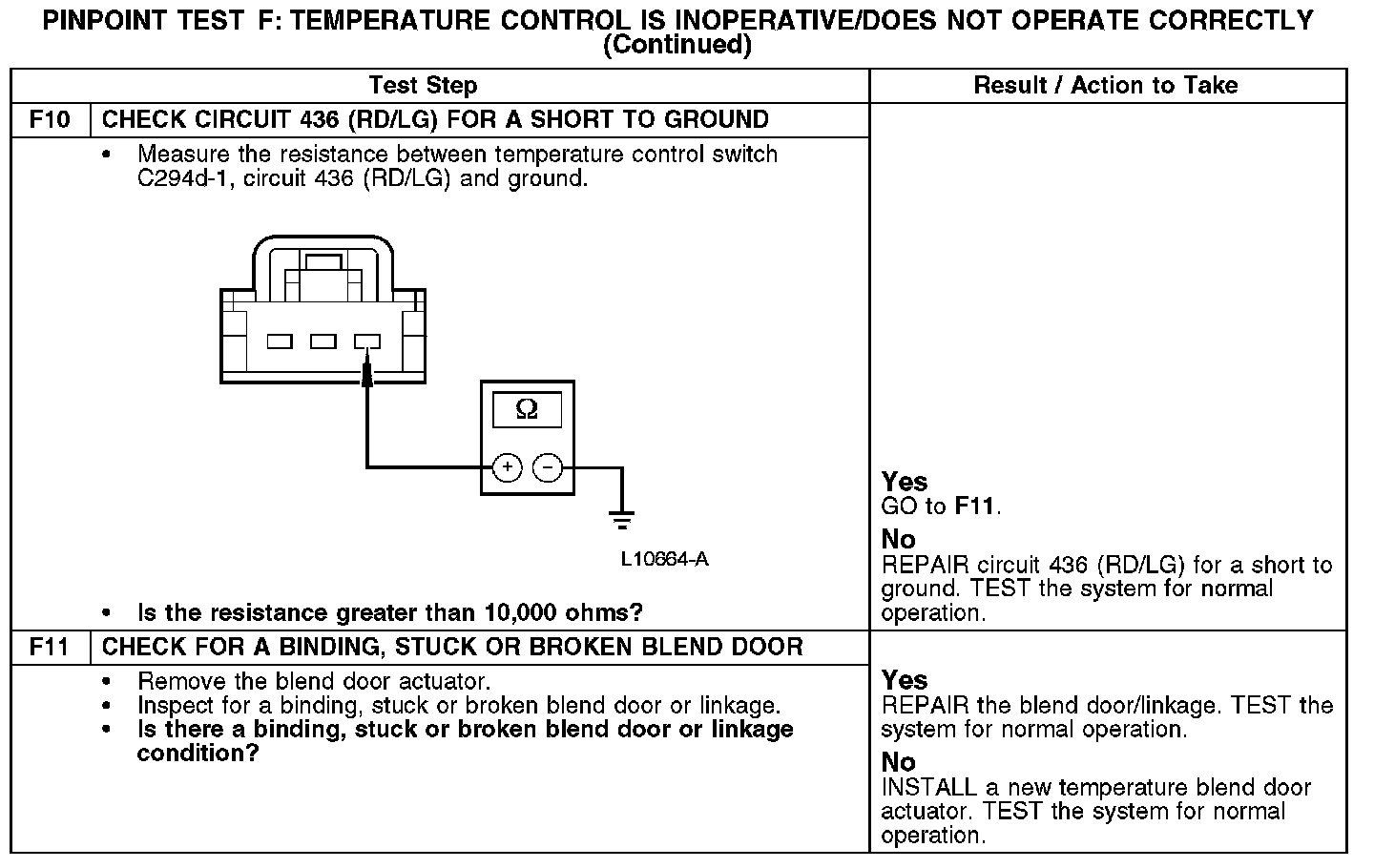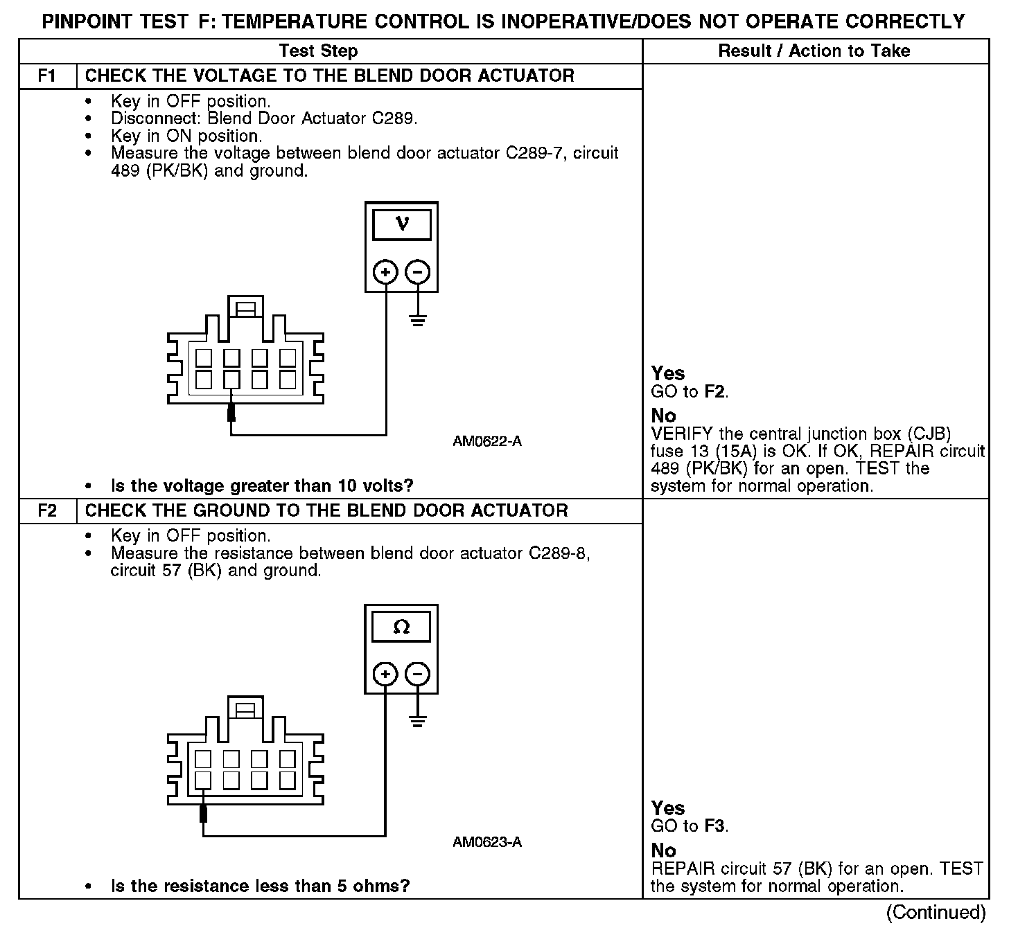 PINPOINT TEST F: TEMPERATURE CONTROL IS INOPERATIVE/DOES NOT OPERATE CORRECTLYF1-F2: