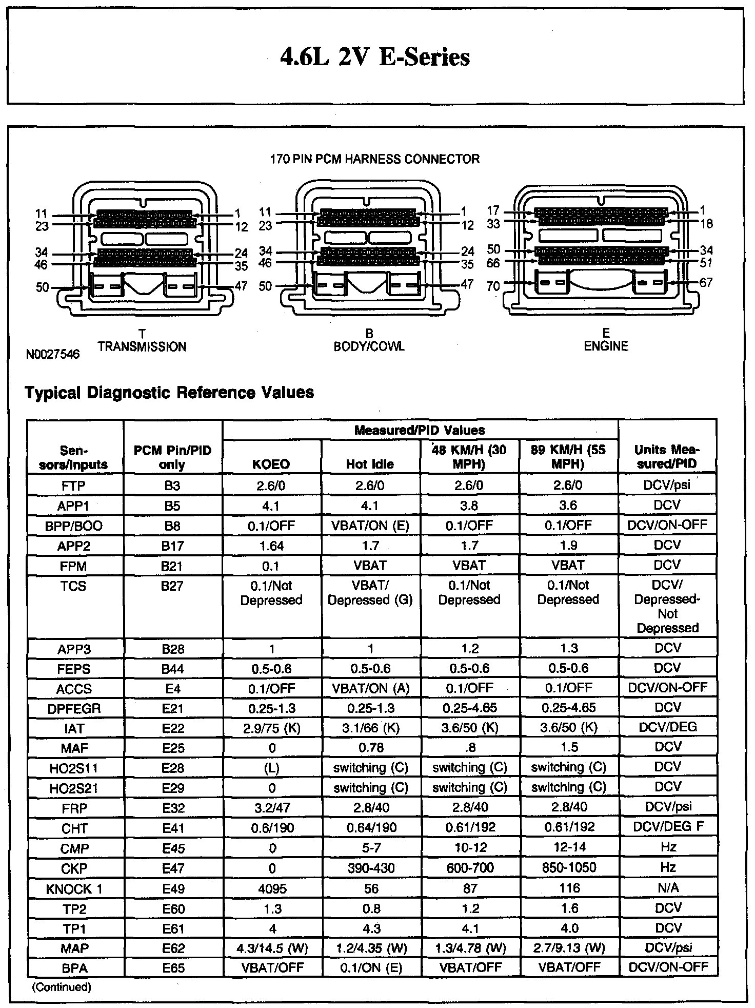 Home >> Ford >> 2007 >> E 150 V8-4.6L >> Repair and Diagnosis >> Powertrain Management >> Computers and Control Systems >> Testing and Inspection >> Scan Tool Testing and Procedures >> Typical Diagnostic Reference Values