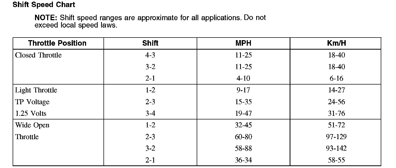 Shift Speed Chart: