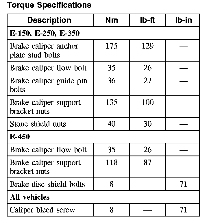 Torque Specifications, Rear