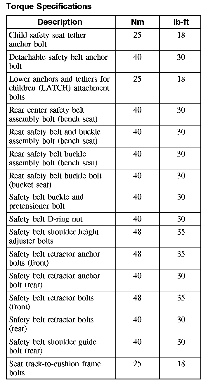 Torque Specifications: