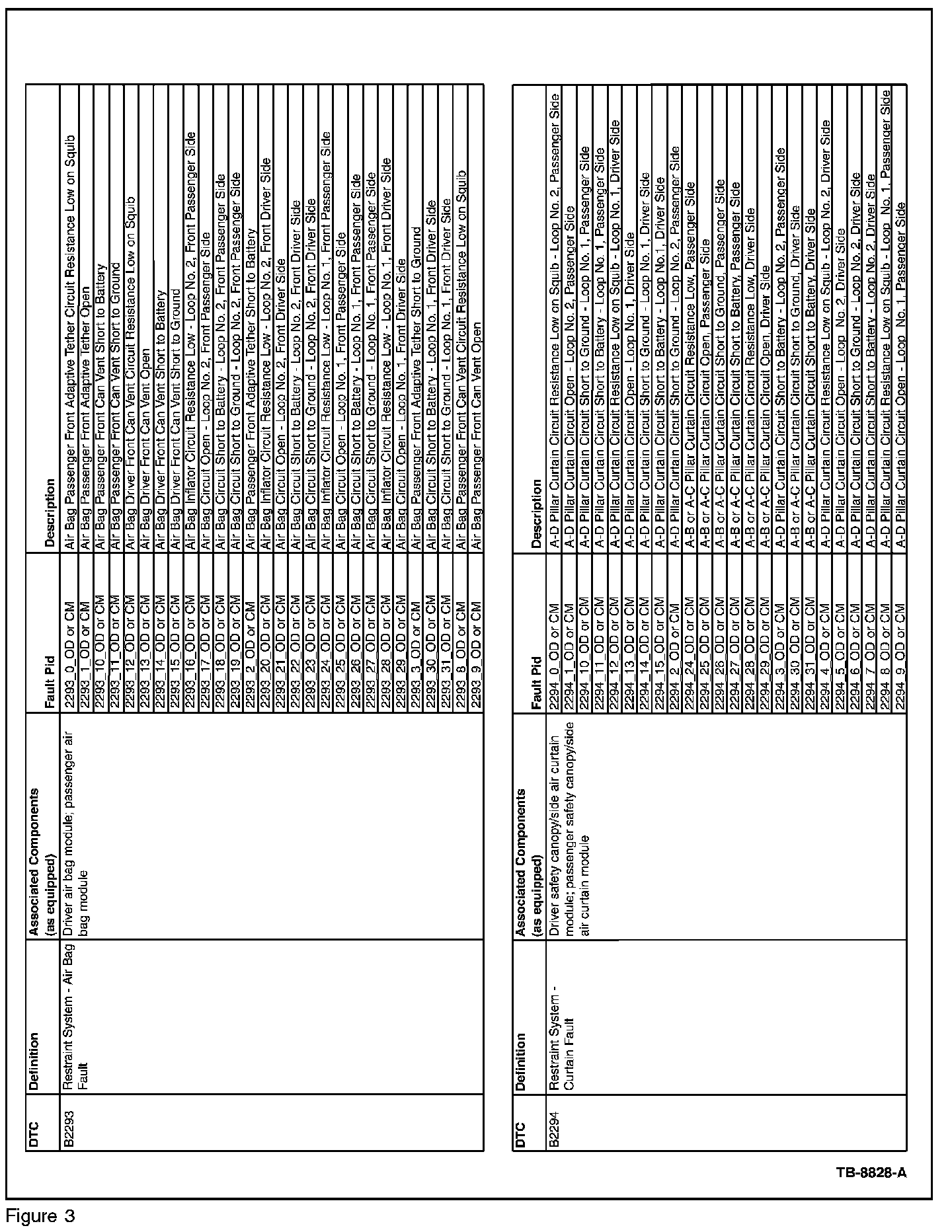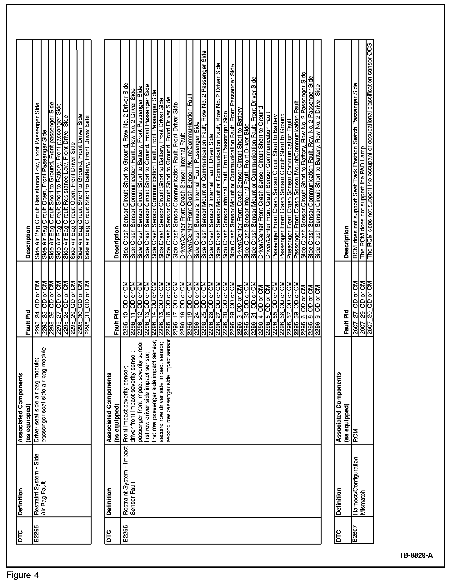 Restraints - Control Module DTCs, Associated Fault PIDs