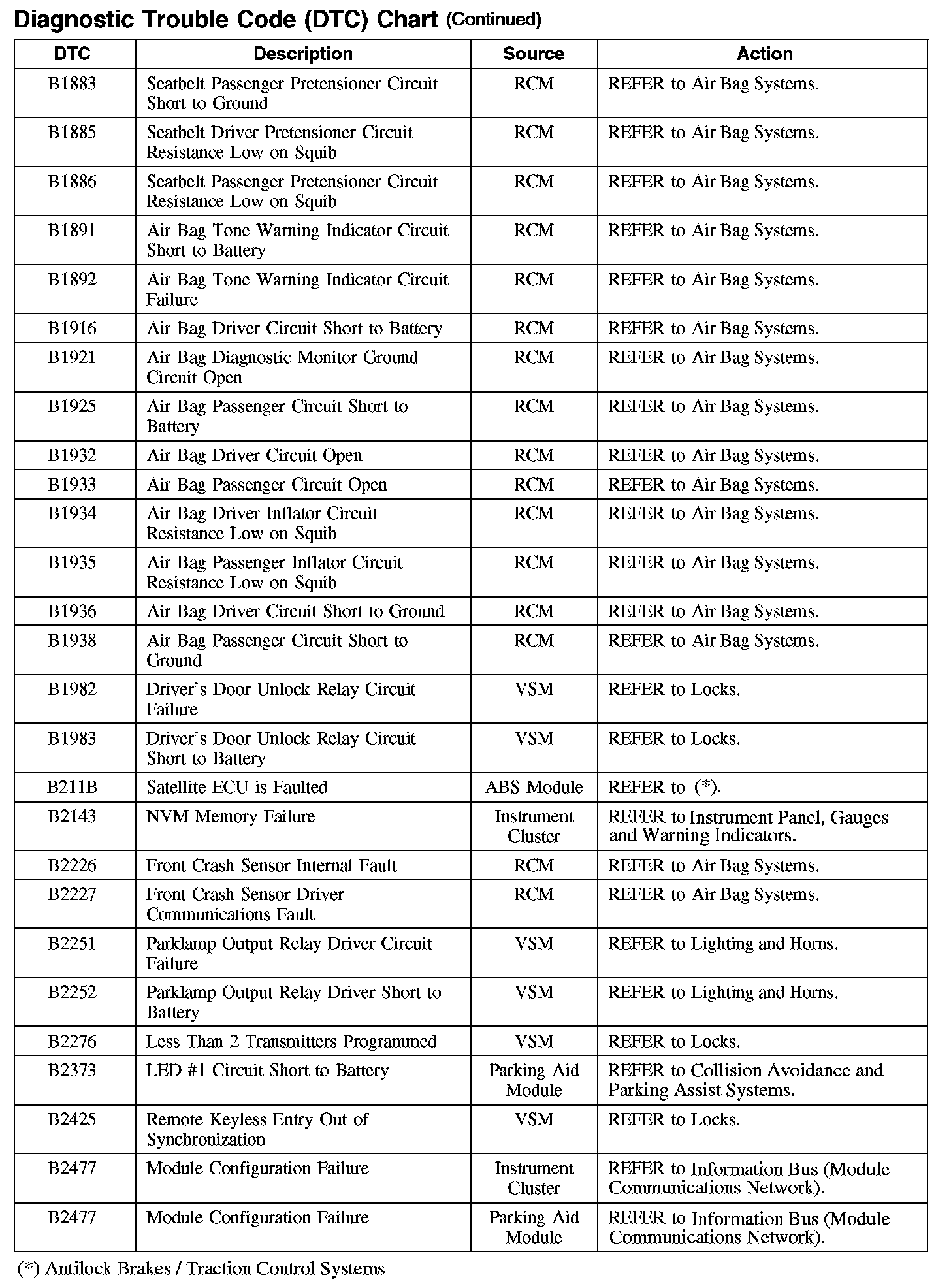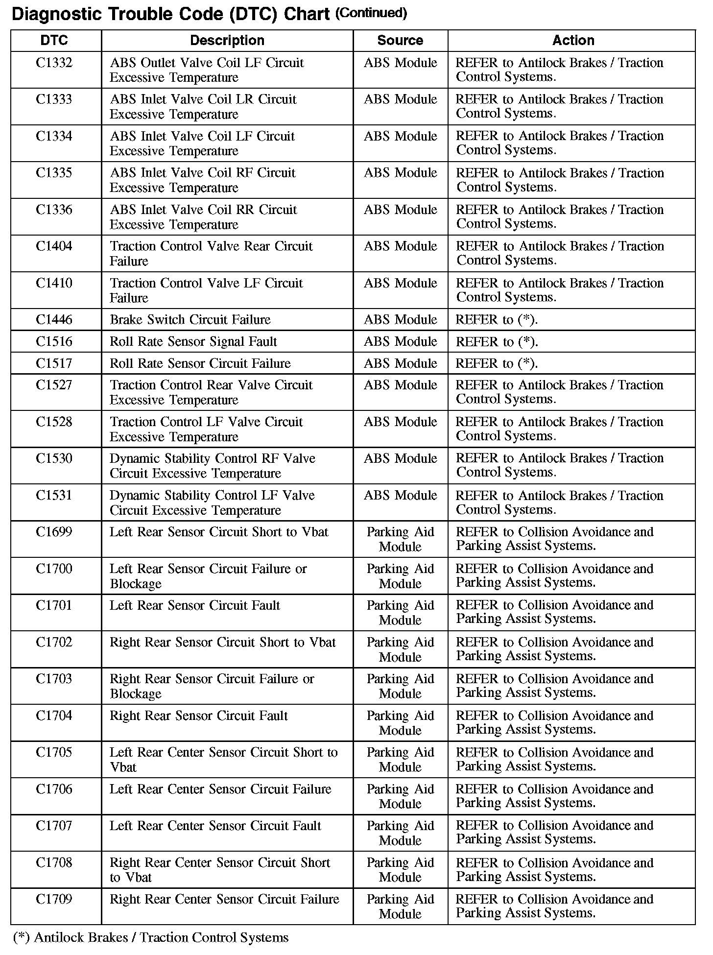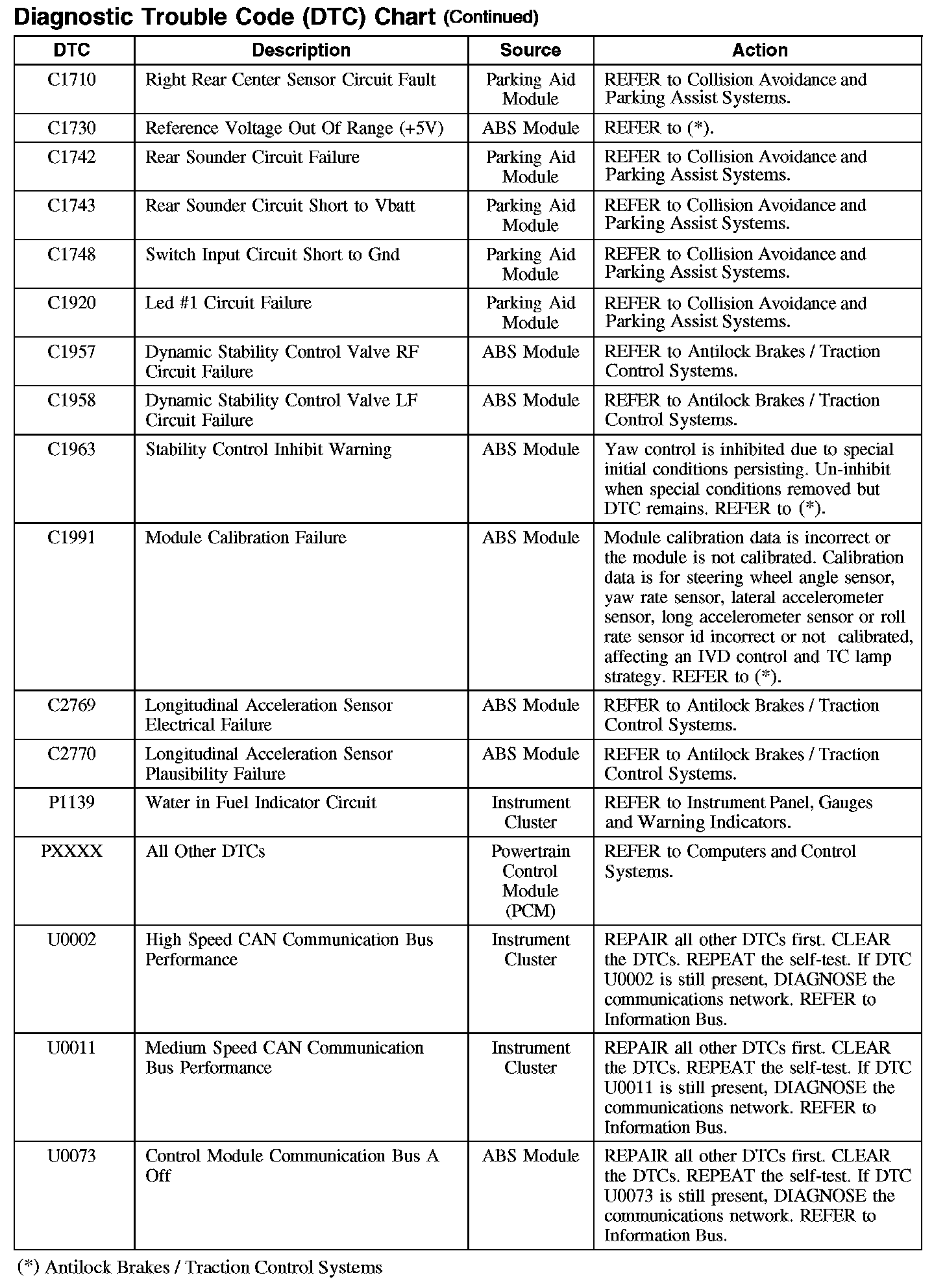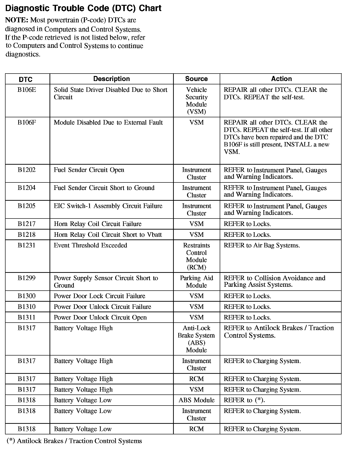 DIAGNOSTIC TROUBLE CODE (DTC) CHART