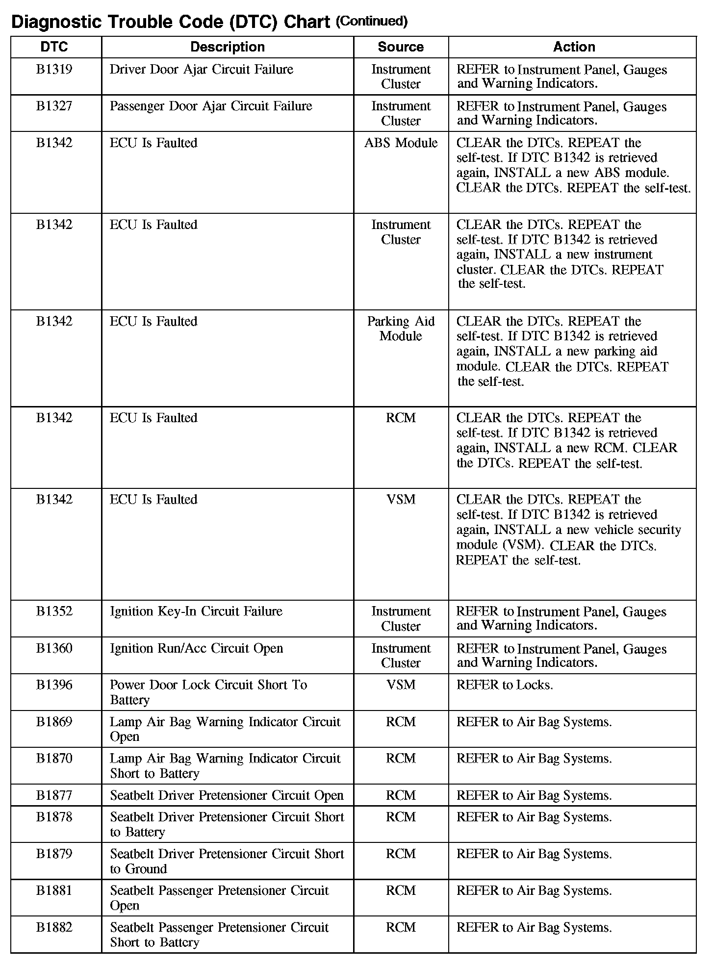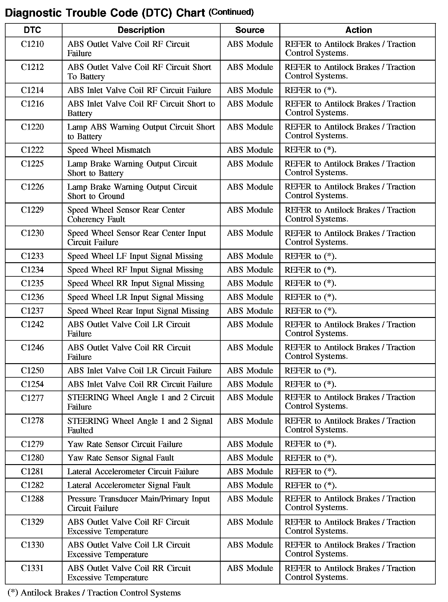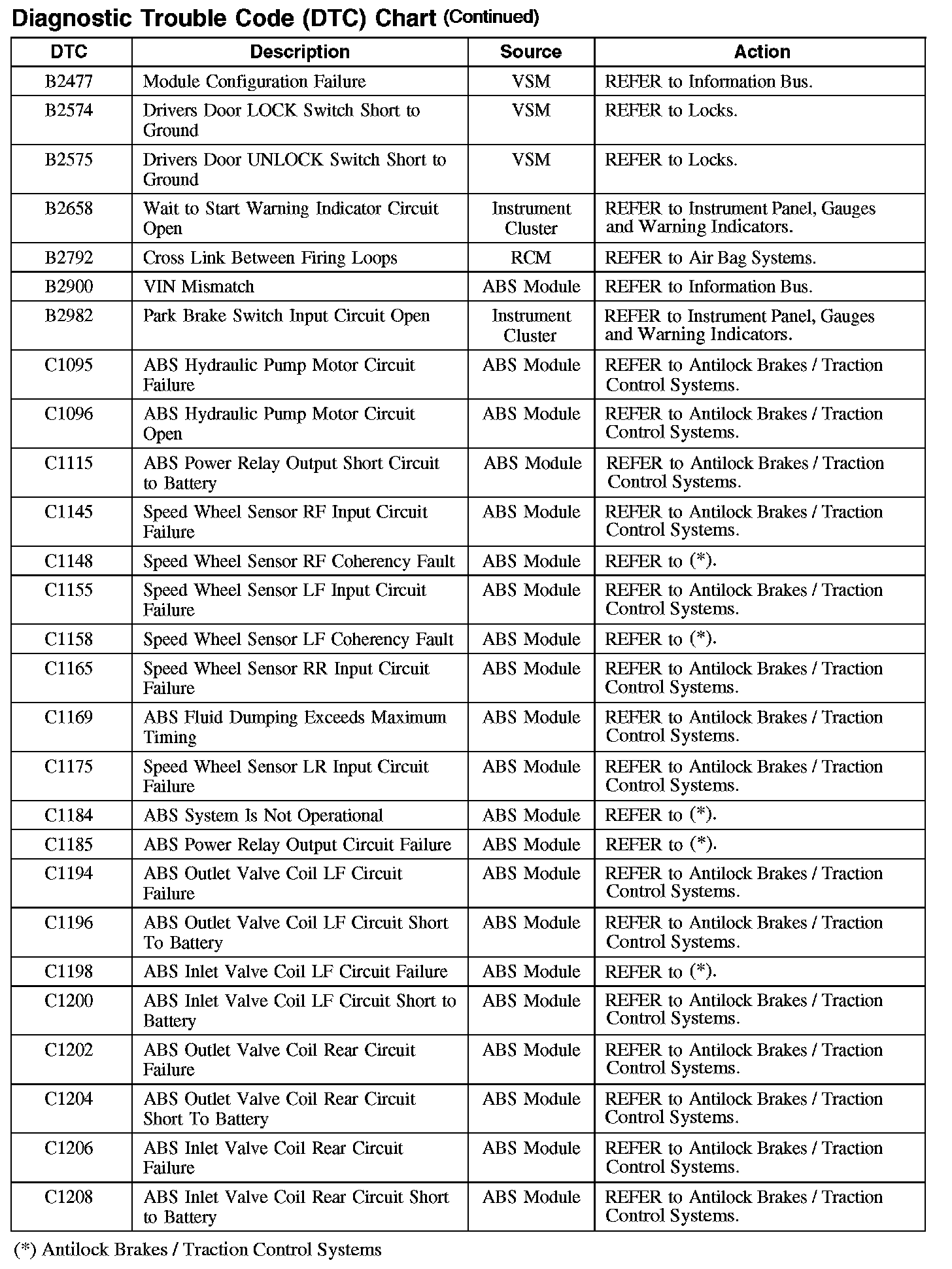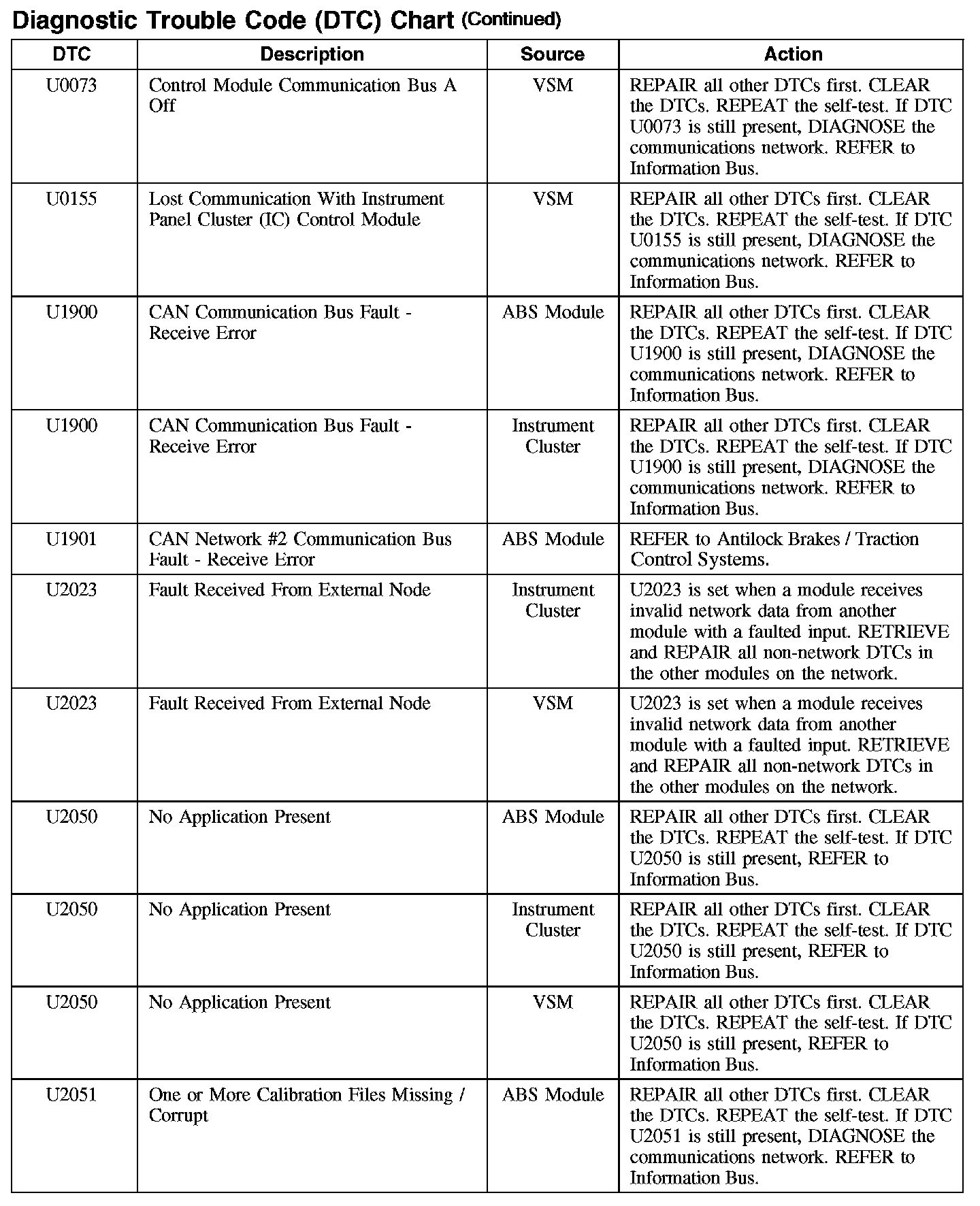 DIAGNOSTIC TROUBLE CODE (DTC) CHART