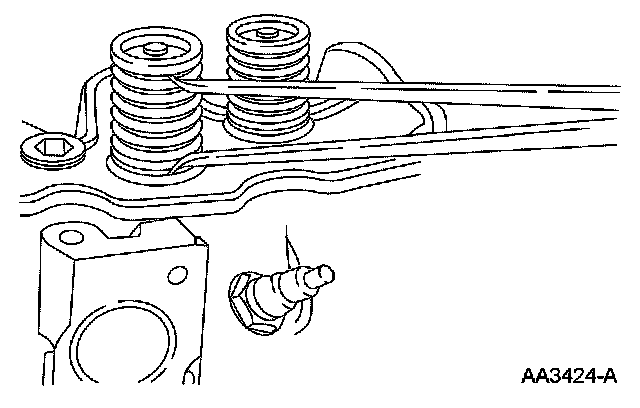 ^ Turn the valve spring and observe the space between the top of the valve spring and the square. Install a new valve spring if out of square.