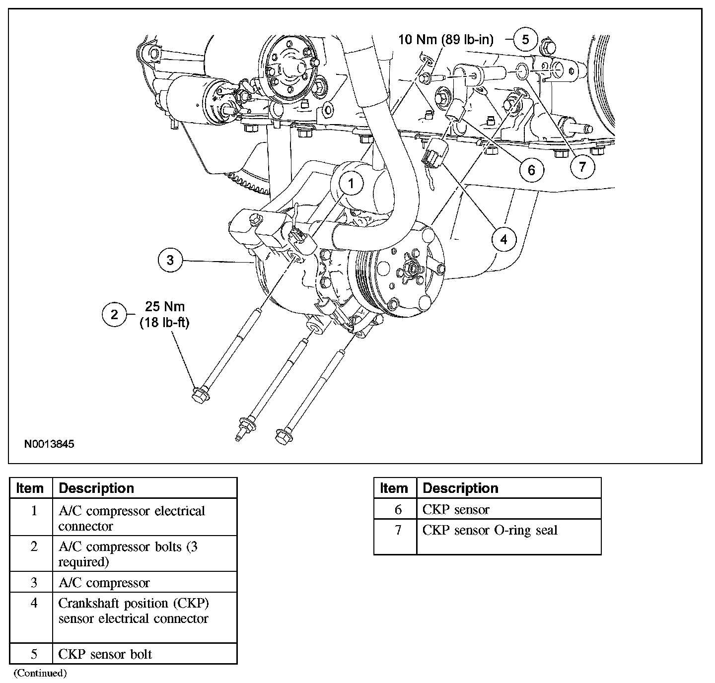 Loosen the bolts enough to slide the A/C compressor down 25.4 mm (1 in), allowing access for CKP sensor removal.