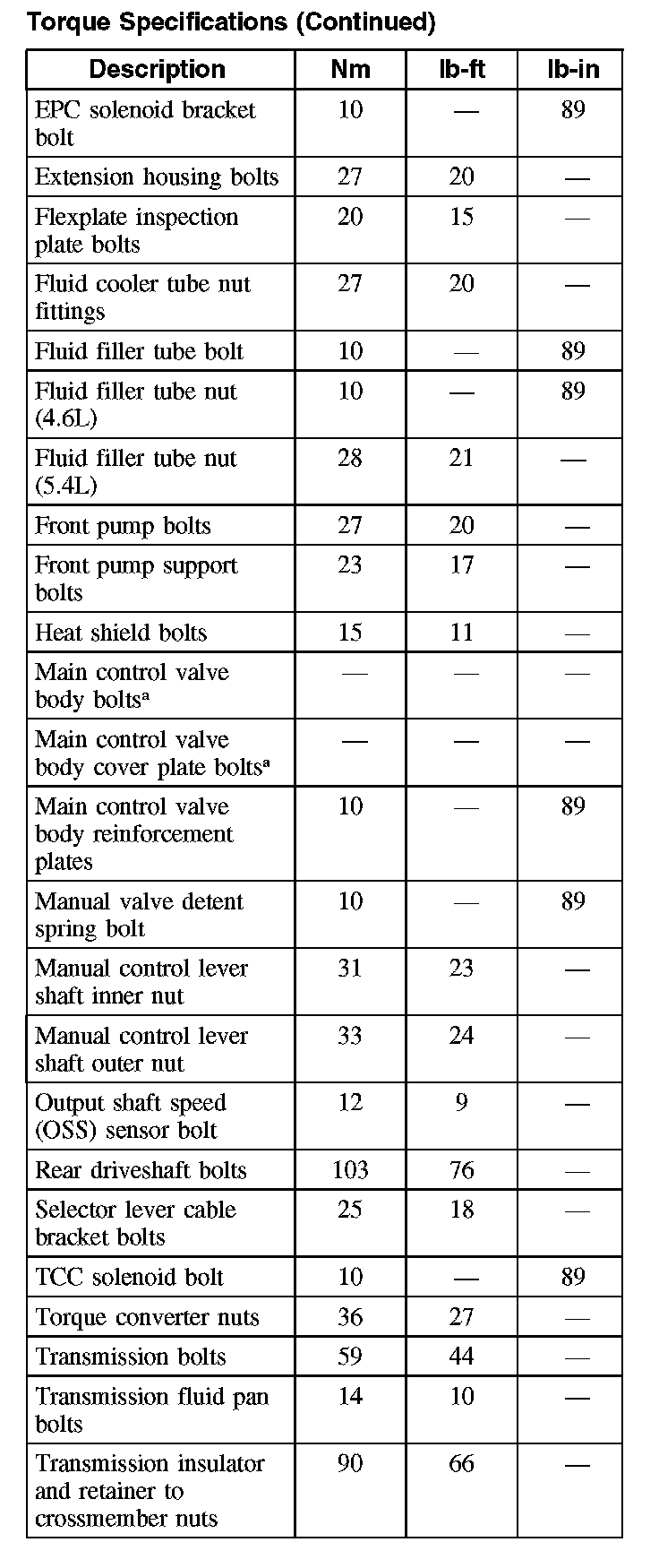 Torque Specifications (Part 2):