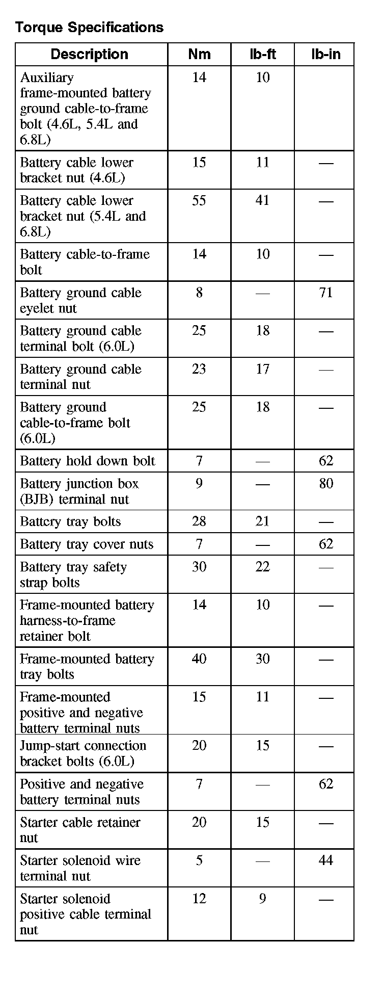Torque Specifications: