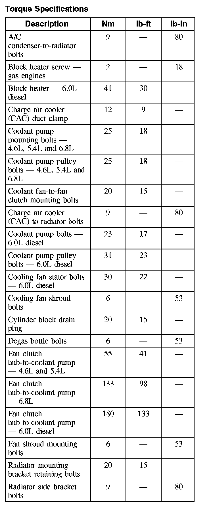 Torque Specifications