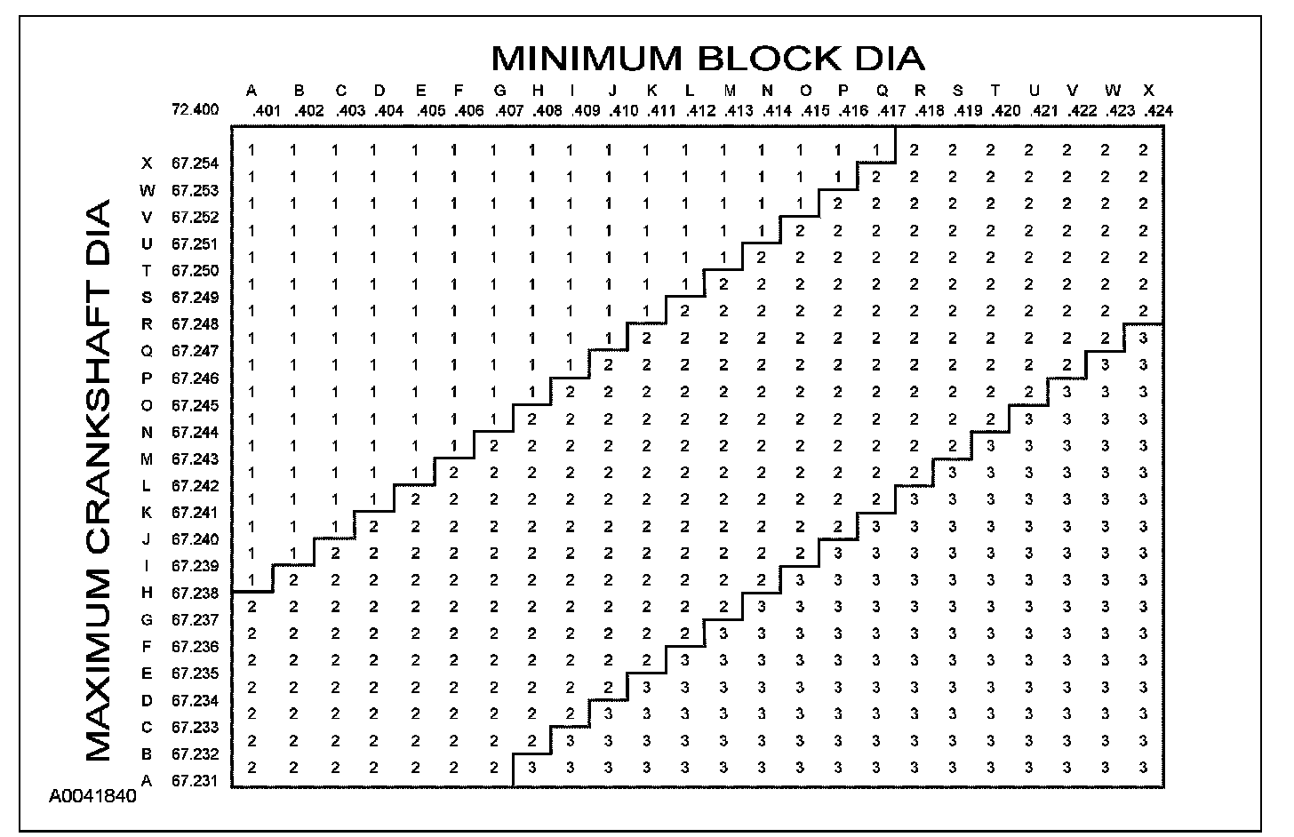 Main Bearing Size Codes