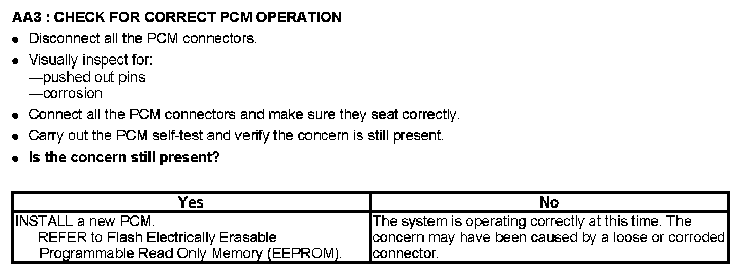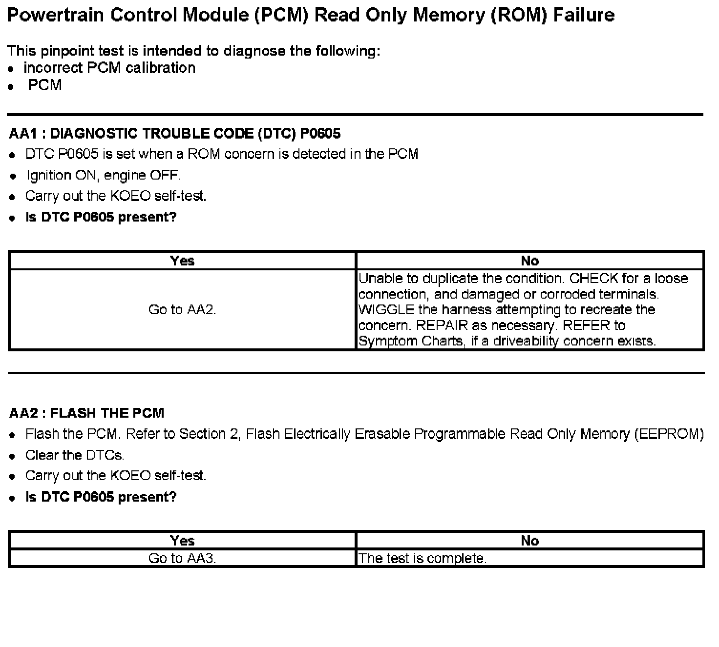 Tests AA: Powertrain Control Module (PCM) Read Only Memory (ROM) Failure